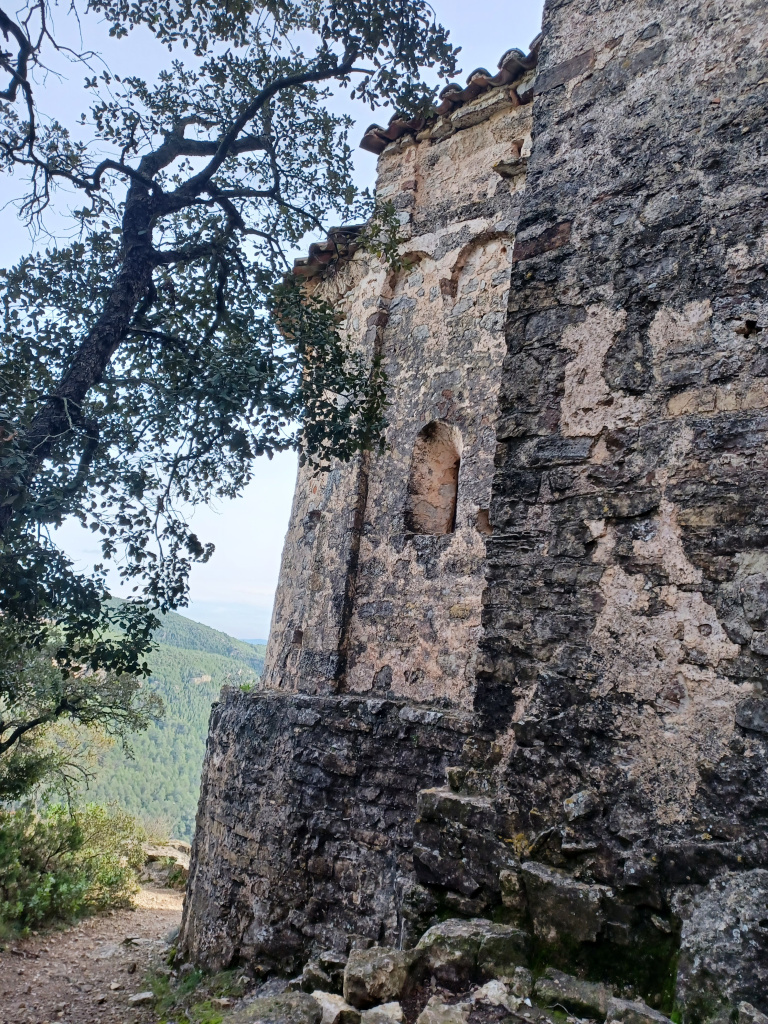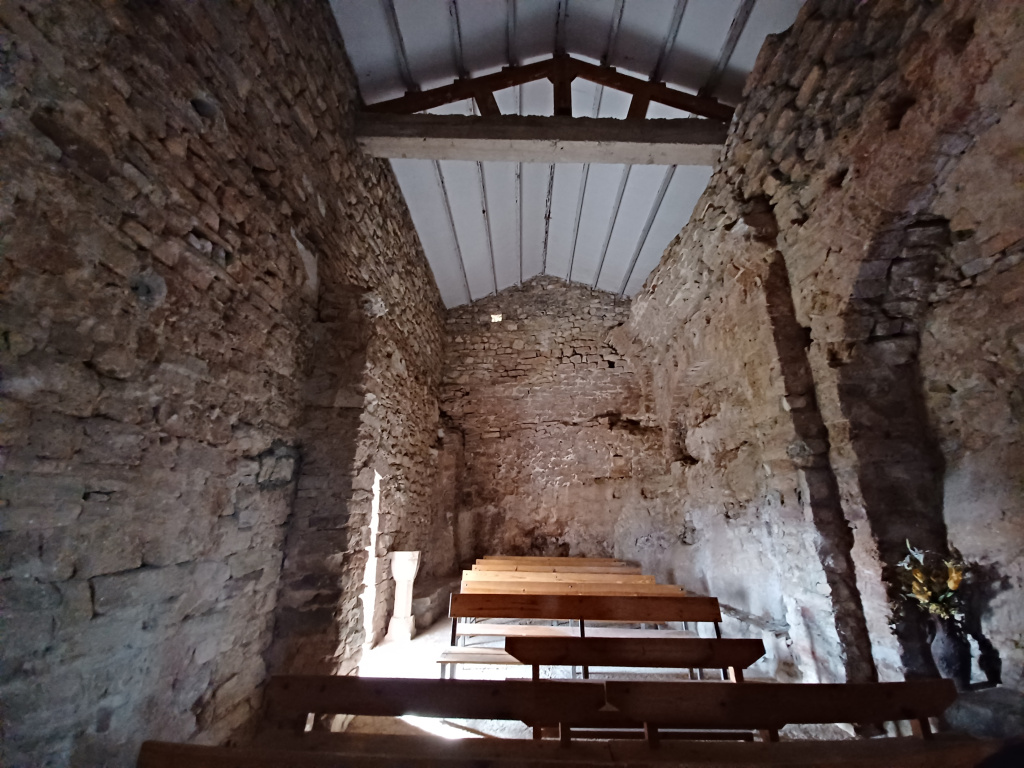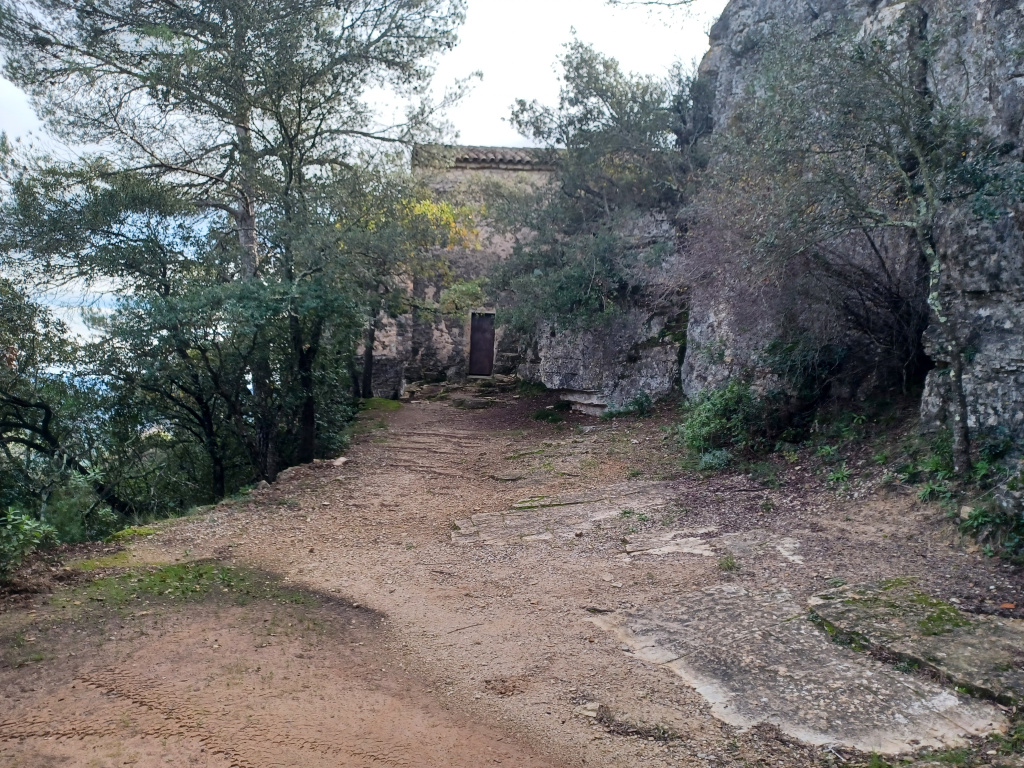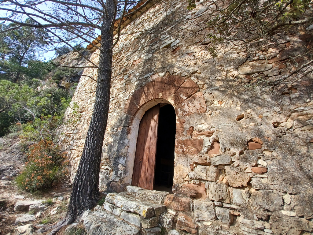 A la façana principal, orientada a migjorn, s’hi obre el portal d’accés d’arc de mig punt adovellat i una petita finestra de doble esqueixada. A la façana de tramuntada, aixecada i adossada a la roca natural de la muntanya, s’hi obre una segona porta d’accés d’arc pla. Per l’interior, aquest mur mostra dos arcs de mig punt.