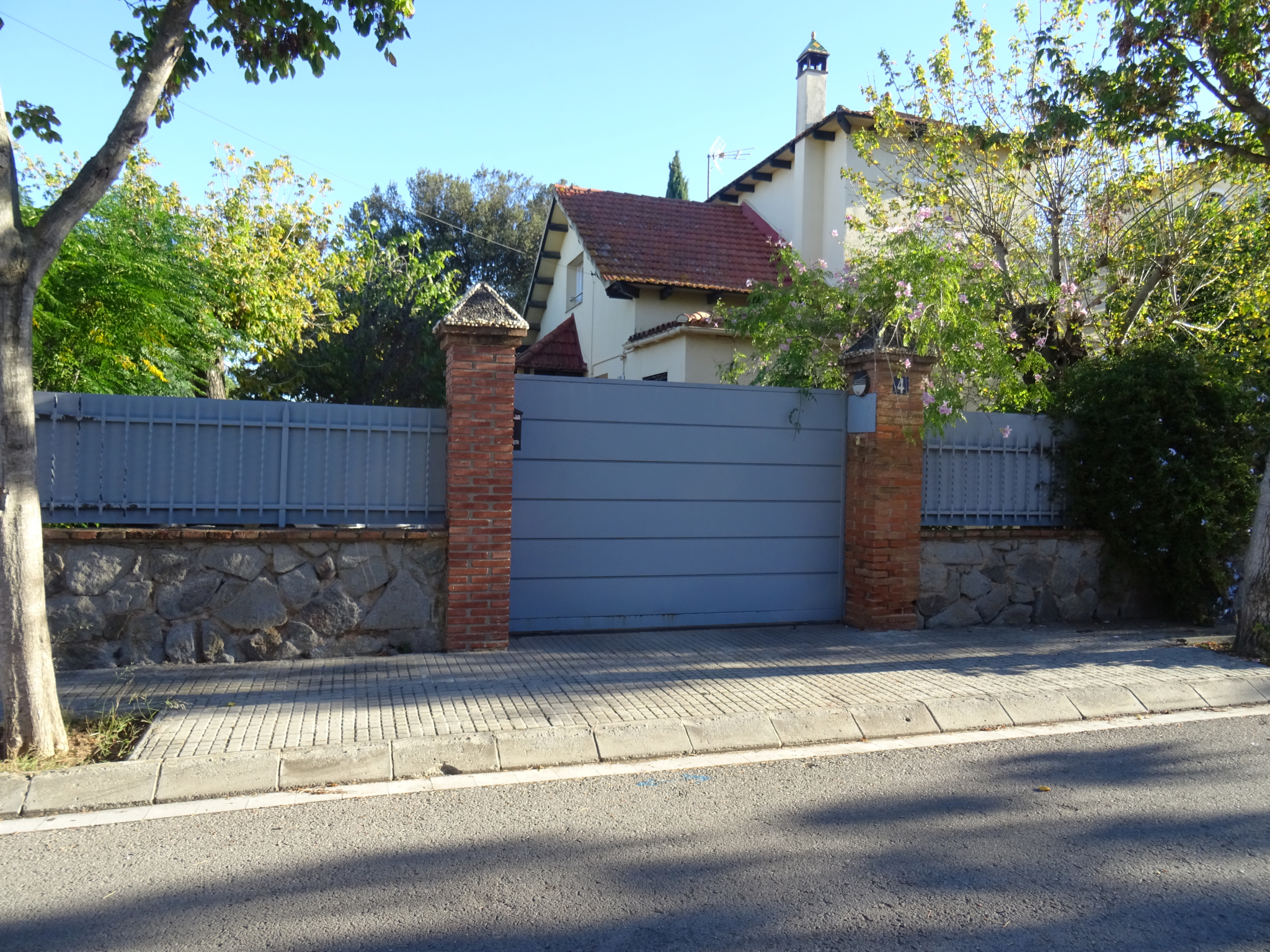 Pel que fa a la tanca, és de maçoneria de pedra granítica rematada amb maó pla, amb reixes de forja.