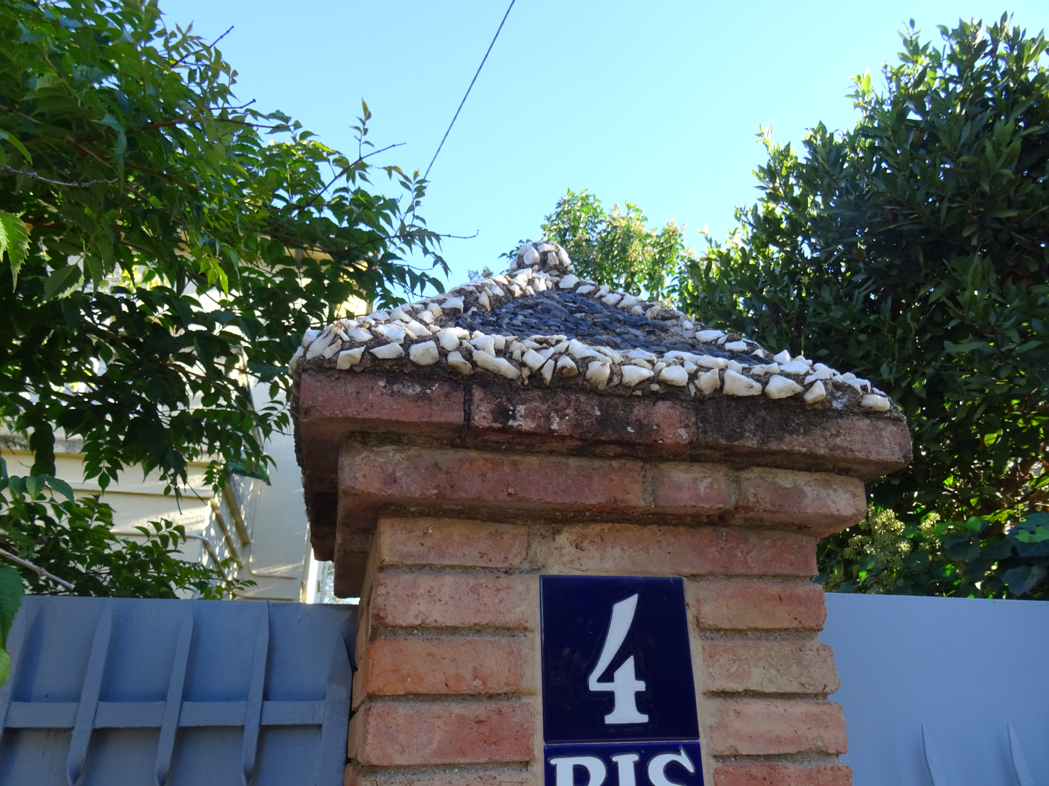 Cancells que es troben a la tanca d'accés a un jardí d'un edifici residencial. Tant el cancell d'entrada de vianants com el de vehicles, tenen pilastres de planta quadrada que estan rematades amb una cornisa d'obra i una piràmide feta amb còdols de riu i grava de marbre.