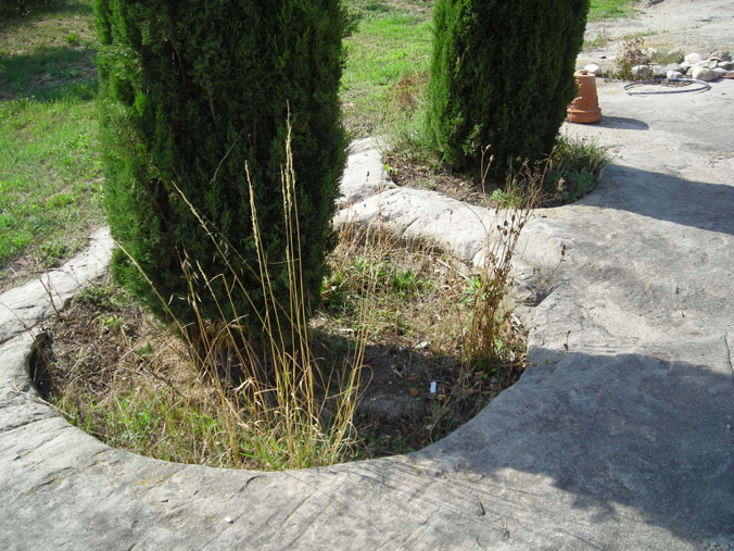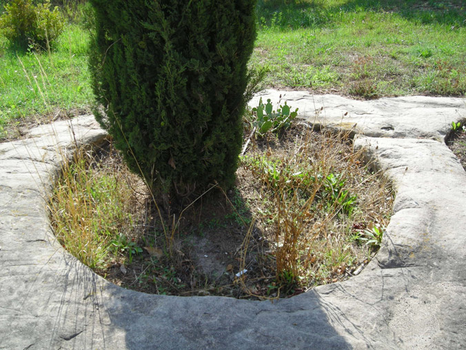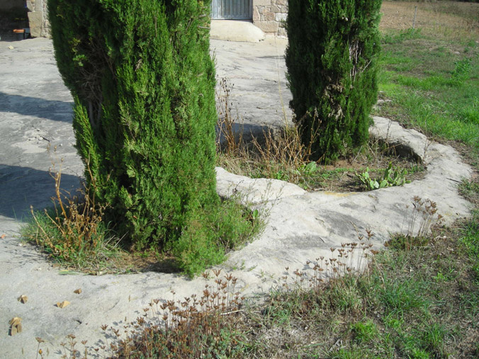 Es tracta de dos forats circulars picats a la roca, actualment omplerts de terra i amb un exemplar jove de xiprer plantat a l'interior cada un. La tina més gran amida uns 200 centímetres de diàmetre i la petita, uns 140 centímetres.