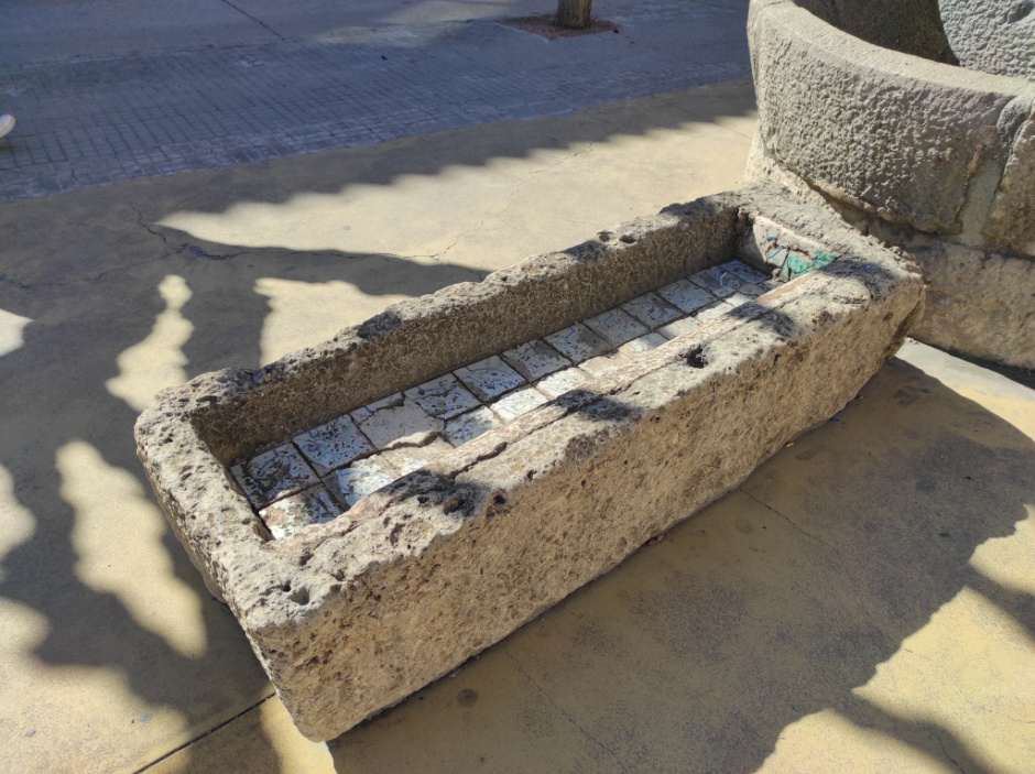 Altres elements que hi podem trobar són, una cartellera d'informació municipal. I la font, a la cantonada est de la plaça, feta amb una gran pedra tallada triangular i una aixeta al centre.