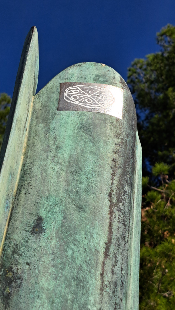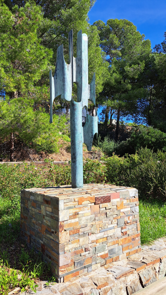Realitzada en bronze, presenta tronc tubular i una capçada esquemàtica realitzada a partir de làmines corbades de bronze. Amb unes dimensions de 2 m d’alçada, 0,65 m d’amplada i 0,16 m de fons, està presentada sobre una base quadrangular de pedra.