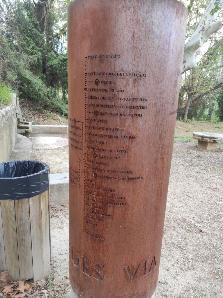 El projecte, a part de disposar de la senyalització direccional, incorpora 3 mil·liaris d’acer que completen la ruta i n’afegeixen una càrrega interpretativa al recorregut. A Gelida estan col·locats a Sant Salvador de la Calçada, l'estació de Renfe i prop de la Ferreria.