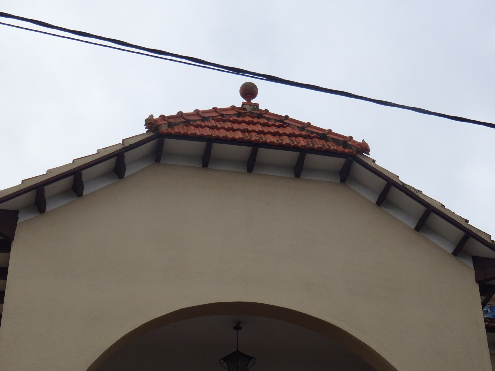 Adossat al costat dret del cos principal s'aixeca un cos en forma de torre, amb planta baixa i planta. És rematat amb un ràfec amb caps de biga i coronat amb un fris de rajoles blaves. A l’esquerra de la casa hi ha un cos menor amb funcions de garatge.