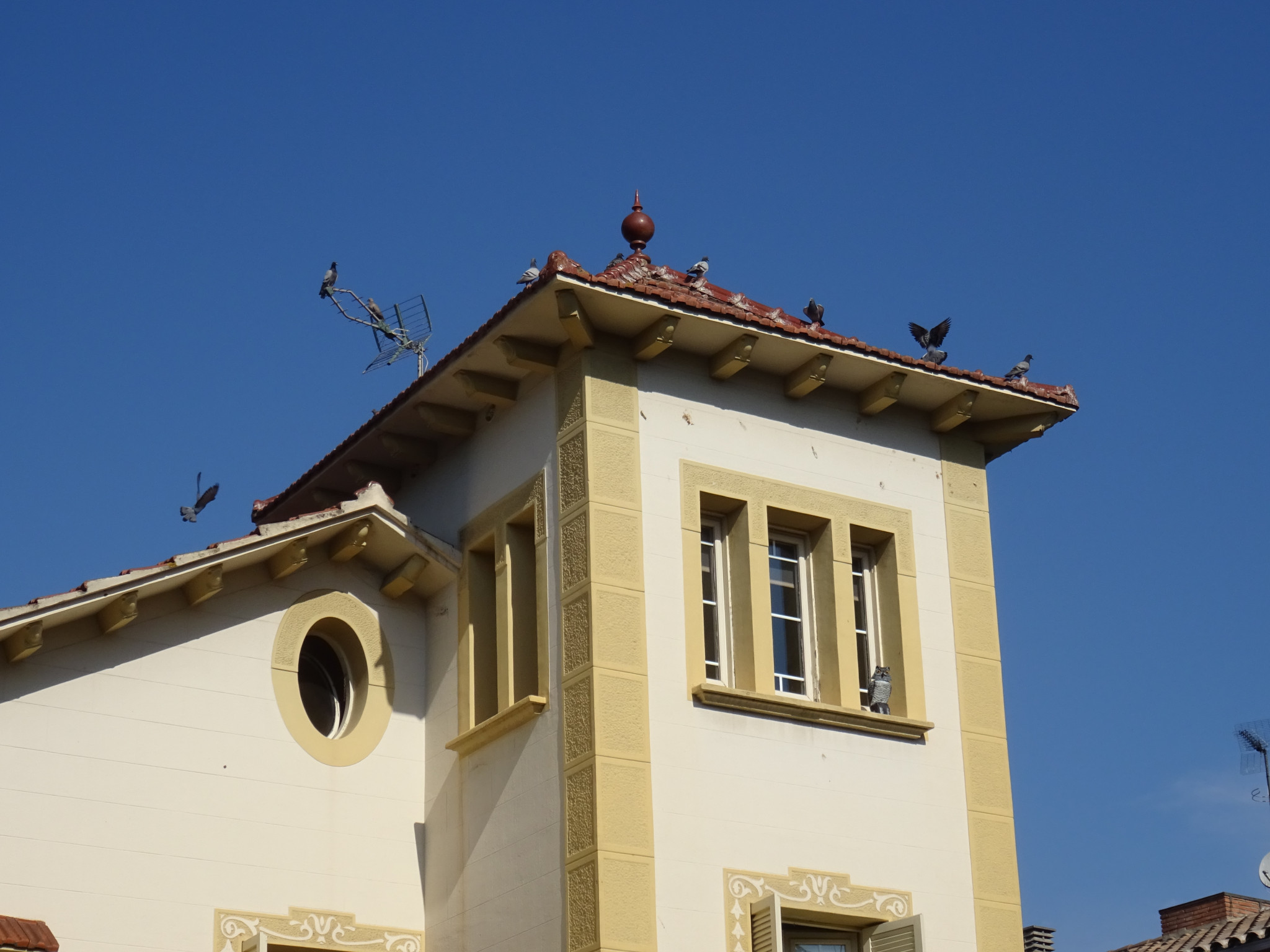 La torre és de planta quadrada i conté, a la part superior, una galeria de tres finestres a la façana principal i dues als altres costats. A les plantes inferiors té finestres de la mateixa tipologia que les de la resta de l'edifici. La teulada és a quatre vessants.