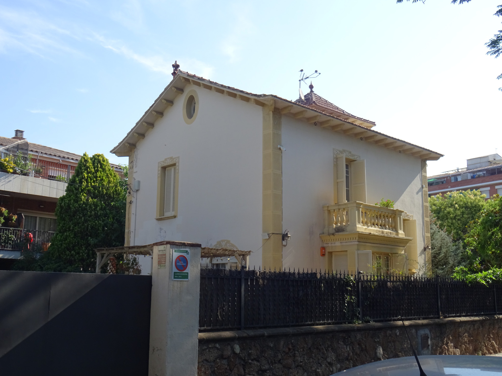 La tanca de la finca és formada per una base amb conglomerat de pedra de Sant Llorenç o Montserratí, emmarcada amb pilastres de planta quadrada i amb un remat d'estil classicista de forma arrodonida. Aquesta forma és el negatiu d'una volta de racó del claustre. La serralleria és de forja amb barrots caragolats.