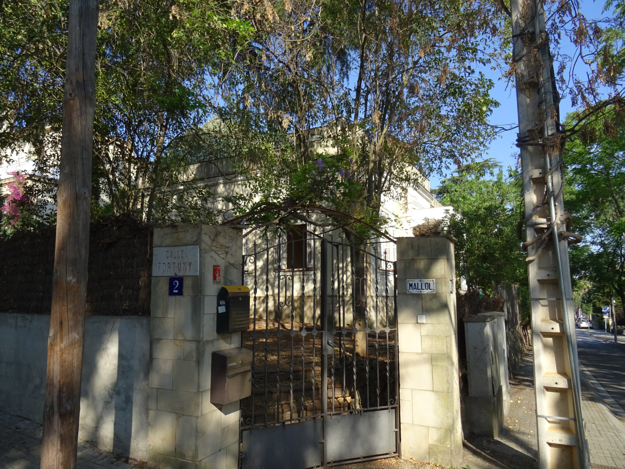 La façana principal, al carrer Mozart, presenta diverses obertures: el portal d'entrada (amb arc carpanell), a la seva esquerra una finestra i a la dreta tres. Aquestes darreres són més estretes que la primera. Davant del portal d'accés hi ha un pòrtic format per arcs carpanells amb columnes d'estil jònic. El parament és arrebossat i, a les cantoneres i a l'emmarcament del portal, fa imitació de carreus. Totes les obertures de l'immoble compten amb una motllura voluminosa. El coronament de l'edifici presenta un fris on hi ha els òculs de ventilació i una cornisa.