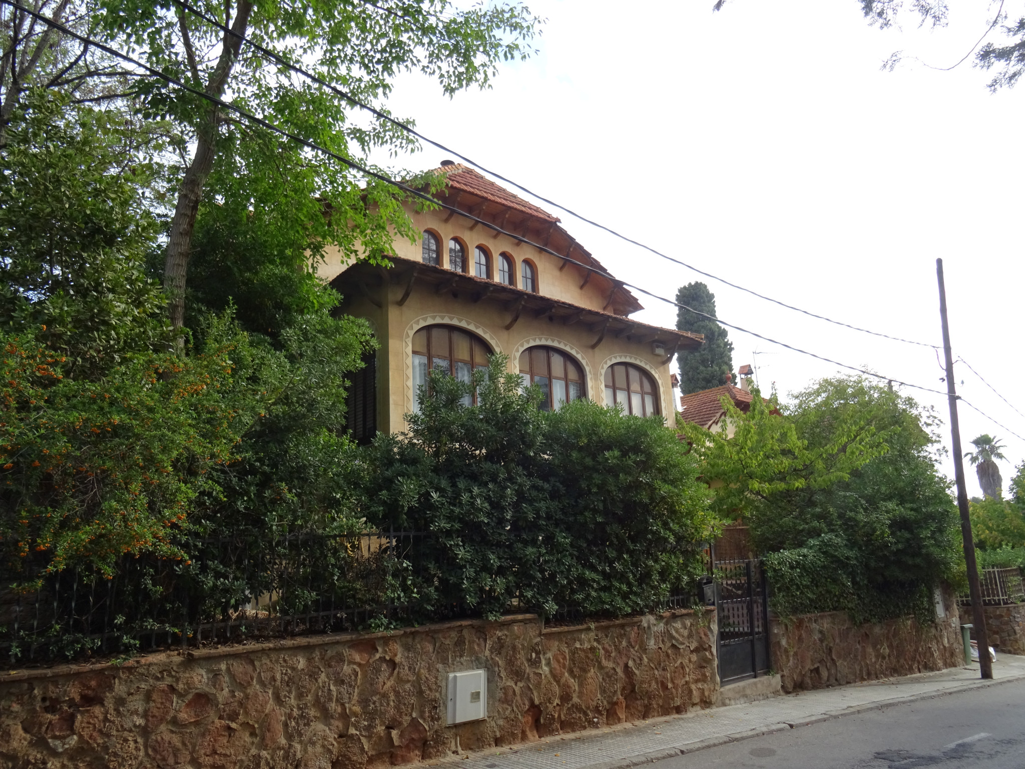 La tanca de la finca és del tipus característic de la urbanització de Joan Borràs, feta amb una base de conglomerat de pedra de Sant Llorenç.