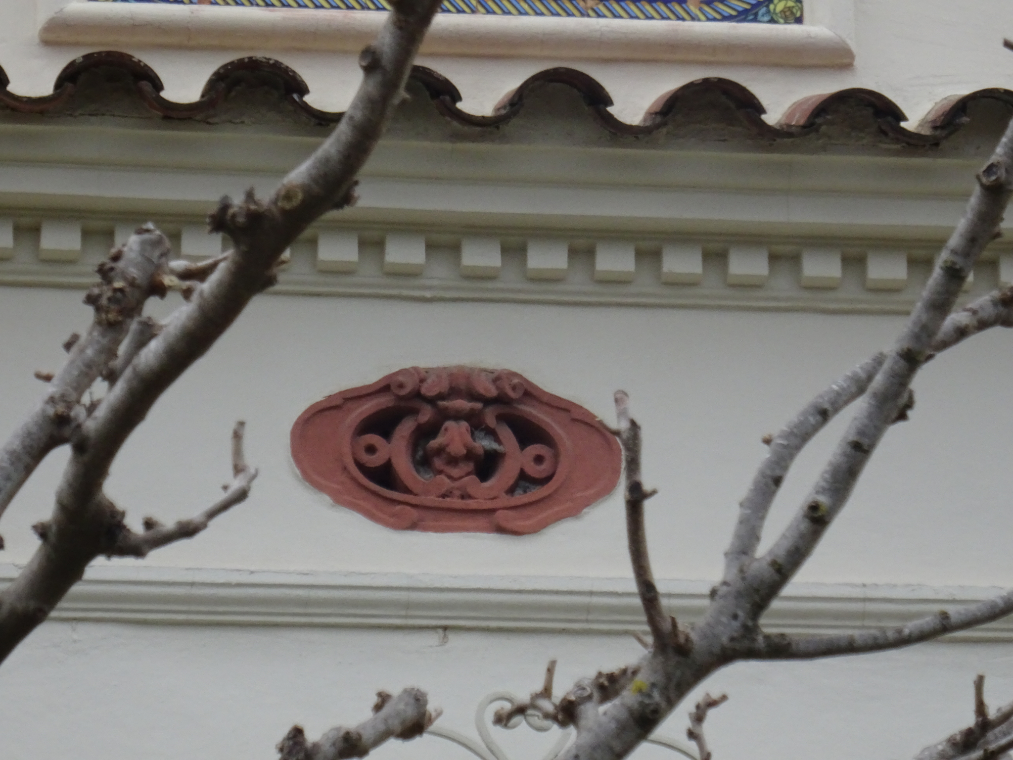 Al costat de llevant de l'edifici hi ha un porxo amb dues arcades, una de punt rodó i una altra d'arc carpanell, les quals es recolzen en columnes nanes de terracota.