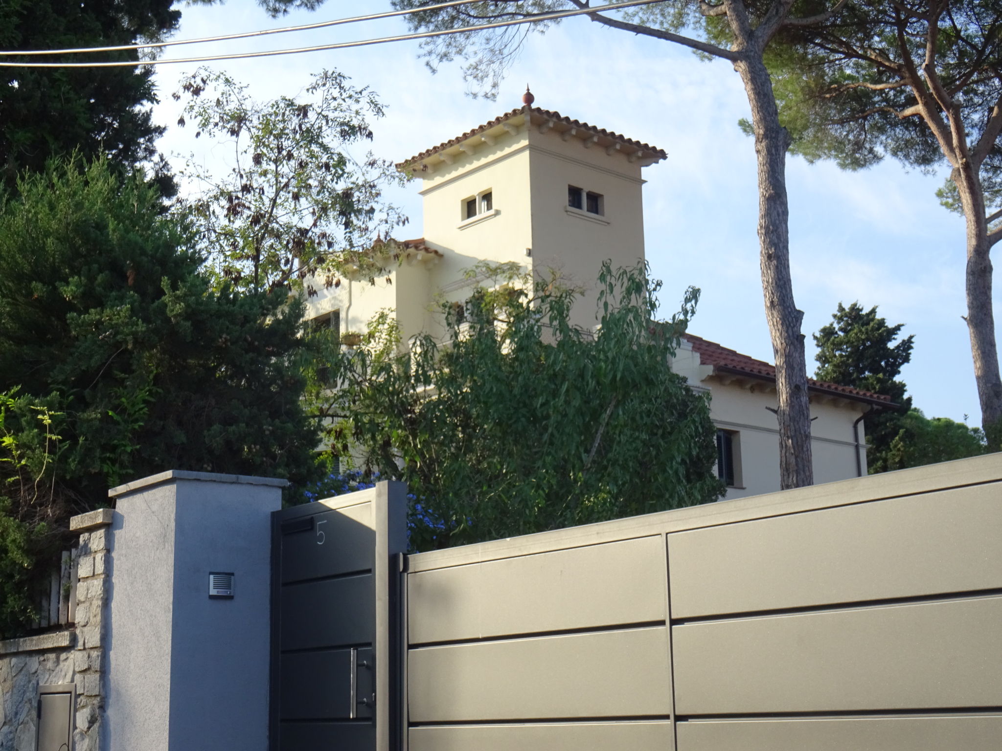 La tanca de la finca és la característica de la urbanització promoguda per Joan Borràs, feta amb una base de pedra de Sant Llorenç. El cancell és format per dues pilastres prefabricades, amb volutes corínties. La reixa de la tanca i de la porta del cancell és de ferro forjat.