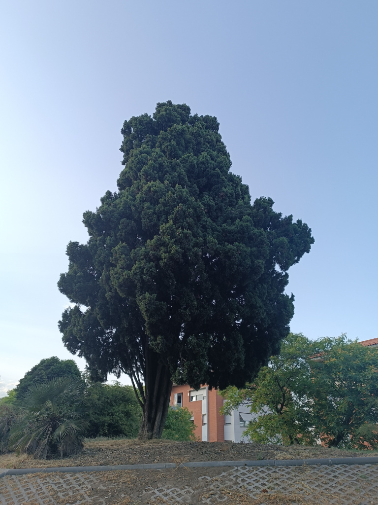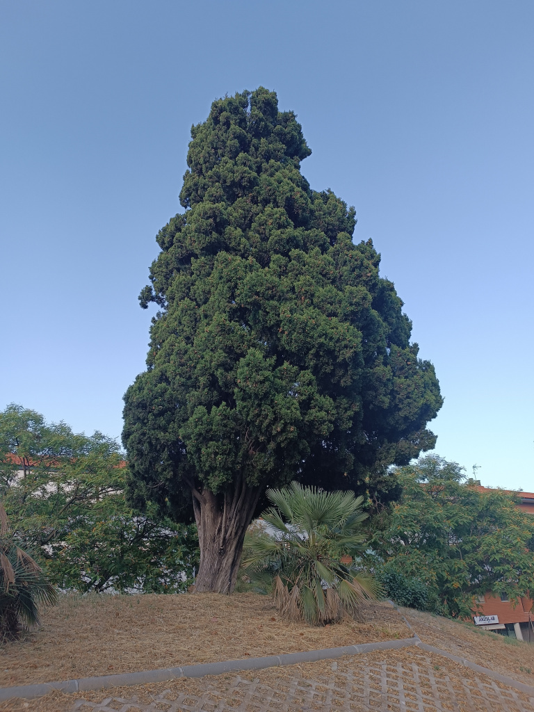 Xiprer (Cupressus sempervirens) vell i de grans dimensions, que assoleix més de 10 metres d'alçada. Té una soca ampla, d'un metre de circumferència, i una capçada acampanada i ample que mesura 5'70 per 6'10 metres. Està ubicat en un lloc preeminent del parc on es troba, damunt una petita elevació.