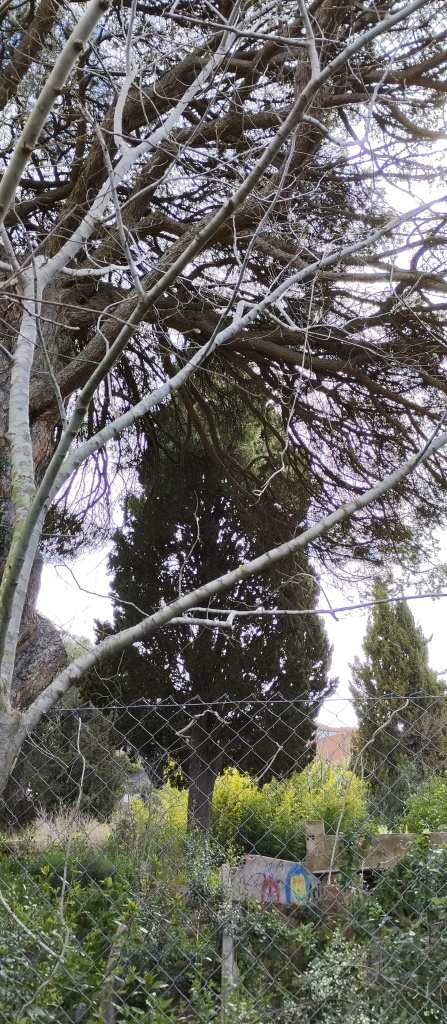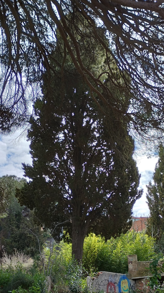 Exemplar de xiprer (Cupressus sempervirens) de 14,5 m d’alçada, amb un perímetre de tronc d’1,53 m i 6,5 m de diàmetre de capçada. L’arbre està situat a tocar de la façana est de la masia.
