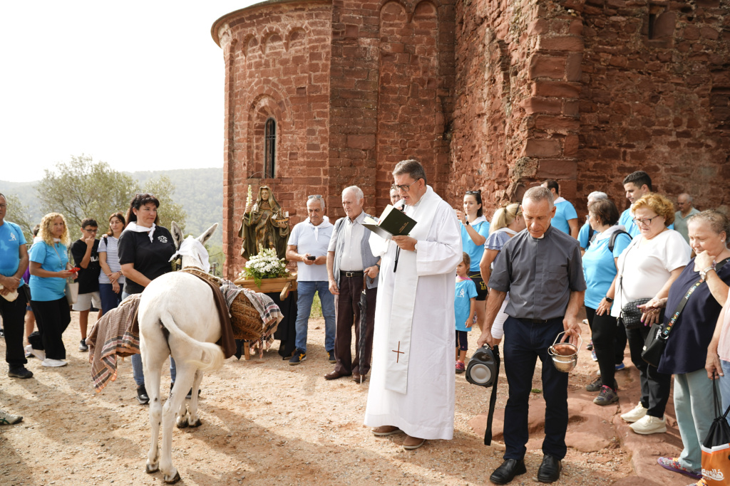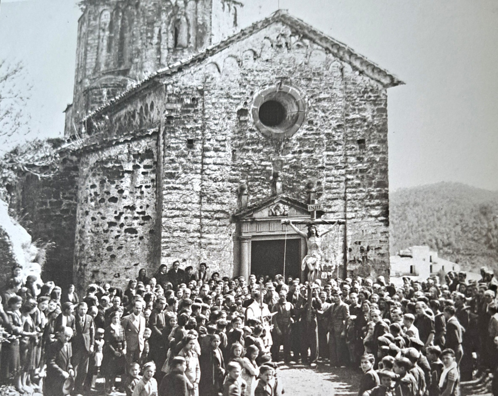 "(..) en temps de Mn. Queralt, rector de la parròquia, l'església de Santa Maria estava molt malmesa pel pas del temps i per actes vandàlics. Aquesta era la raó per la qual es considerava perillós fer-hi celebracions a l'interior. Quan arribava el dia de l'aplec la missa es feia a la porta perquè a dins hi havia perill d'enderrocament. A la plaça s'hi posava un tendal. Algunes vegades la missa d'aquest dia s'havia celebrat a l'era de can Sala de Baix, a causa de la poca seguretat de l'església de Santa Maria". (Roig, 2010: 240-241)