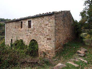 Masia de planta quadrada, amb planta baixa i dos pisos, amb teulada a dues vessants amb el carener paral·lel a la façana principal que s'obre a llevant. Es troba ubicada en una feixa elevada respecte al torrent. La obra és de pedra petita amb algunes cantoneres ben escairades i alguna finestra de pedra. El portal principal, ubicat a la façana, és adovellat de pedra. La casa té un cobert afegit a la banda de tramuntana, i un porxo a la façana de ponent. Una mica separat hi ha un cobert. Actualment la casa està en desús i molt coberta per la vegetació de l'entorn.