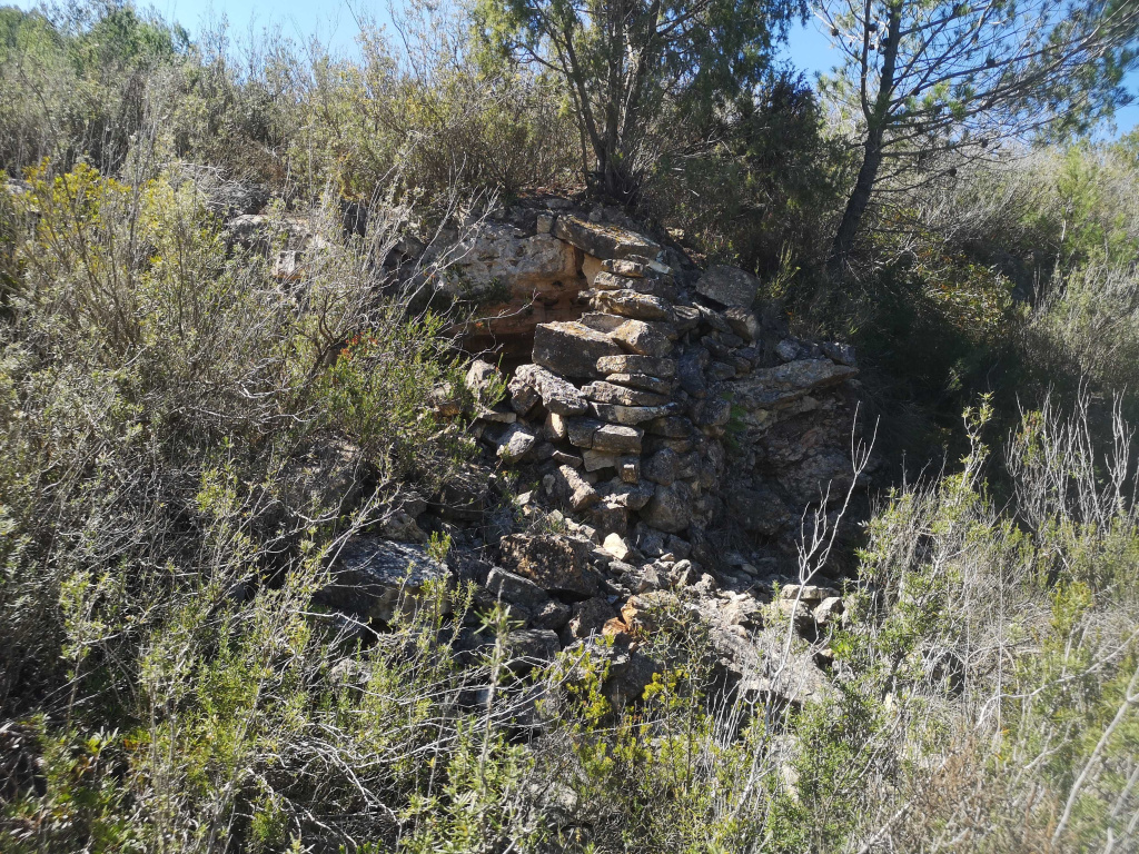 Barraca de pedra seca de planta irregular. El seu estat d'enrunament fa difícil saber com eren la coberta, la llinda o els muntants. Sí que es pot endevinar que era de petites dimensions.
