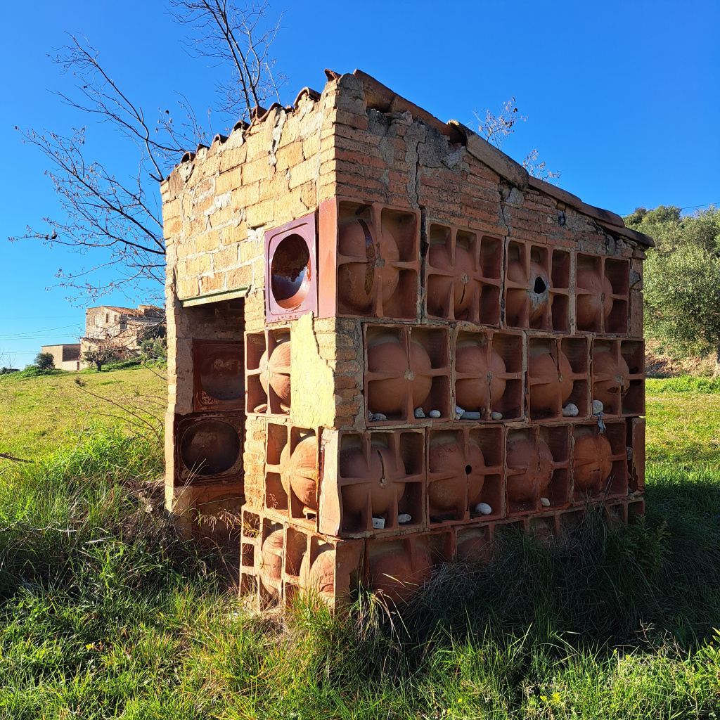 Barraca situada en un camp al nord de Can Fontanellas. És una construcció de planta rectangular coberta de teula àrab a un vessant que desaigua a la part posterior. Té la singularitat d'estar parcialment construïda amb piques de ceràmica vidriada disposades en filada i amb la cara interna mirant a l'interior. A la part frontal hi ha una porta i un tram de mur de maó, així com una pica amb la part frontal mirant a l'exterior. A dins hi ha les restes d'un foc.