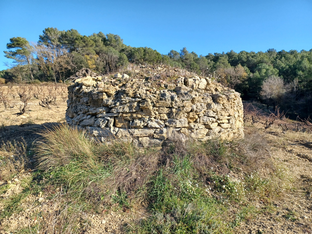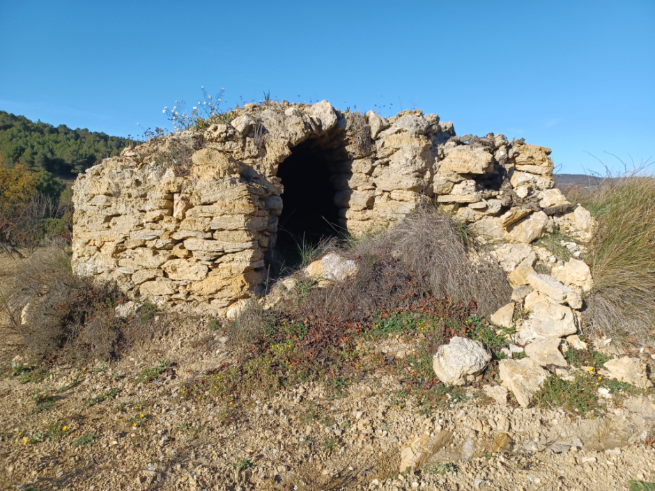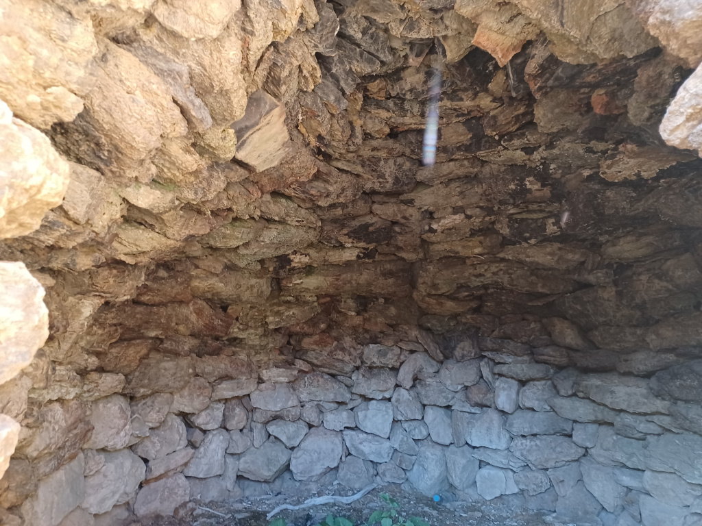 Barraca de planta circular construïda amb la tècnica de la pedra seca.