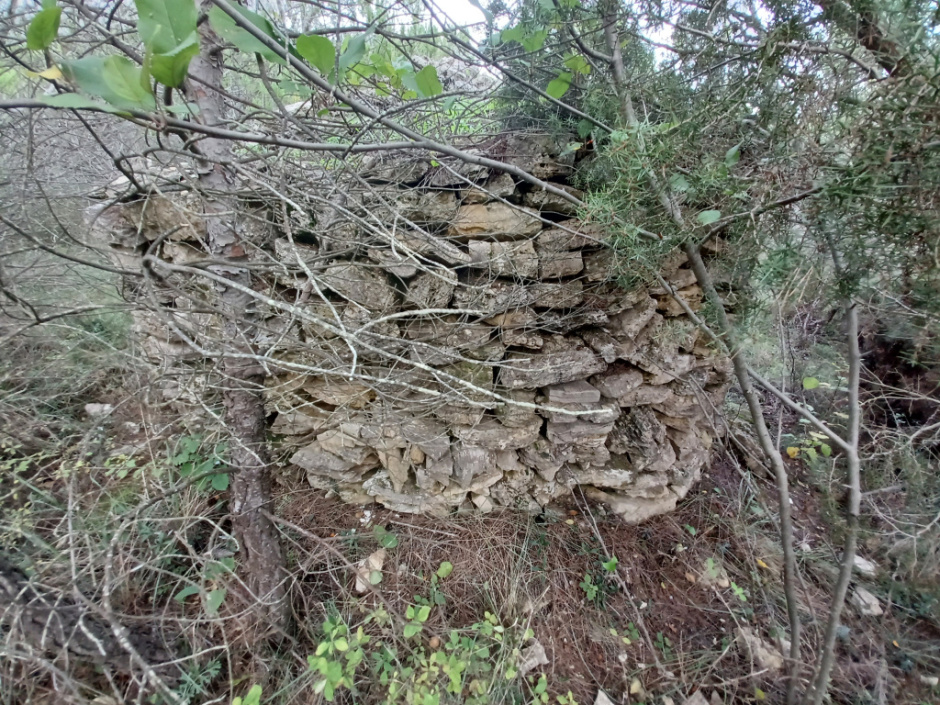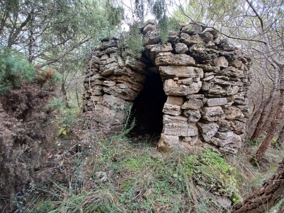 Barraca de planta circular construïda amb la tècnica de la pedra seca.