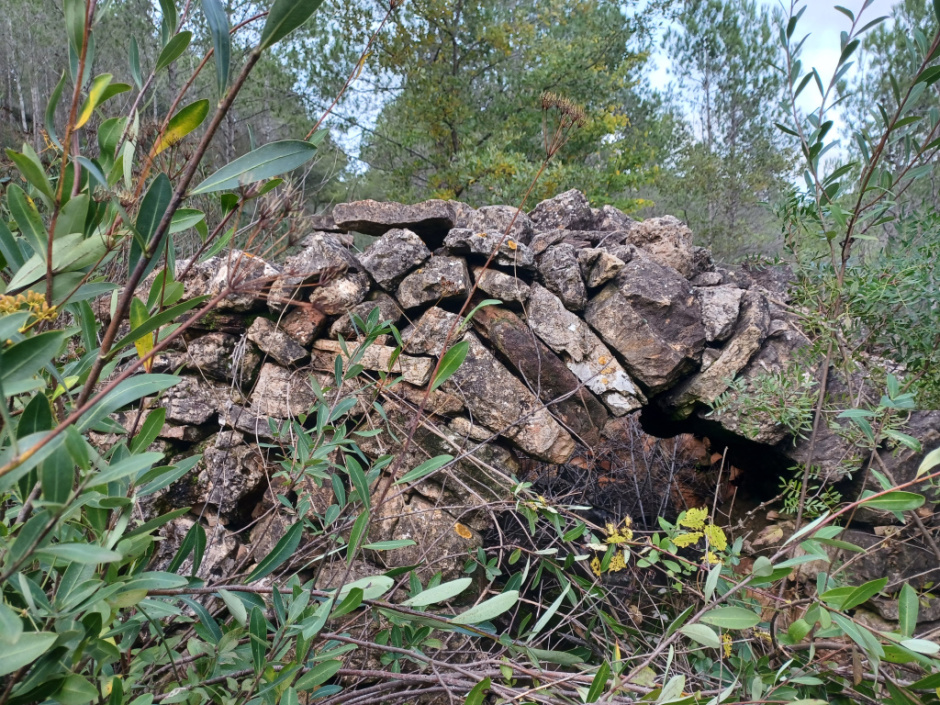 Barraca de planta circular construïda amb la tècnica de la pedra seca.