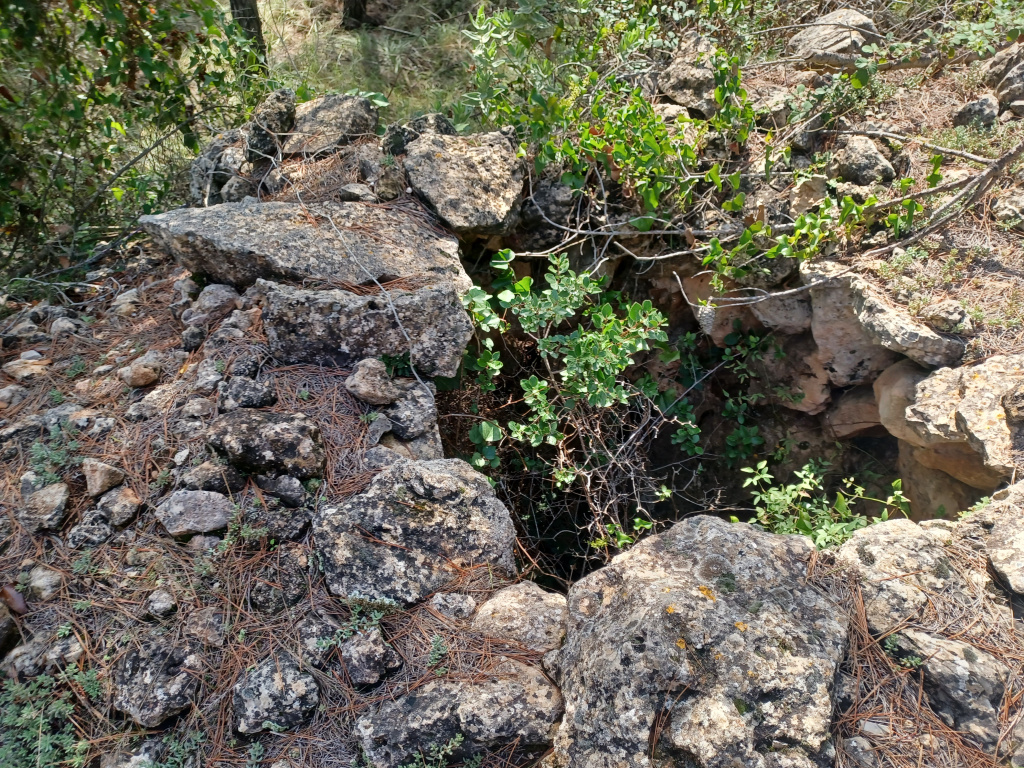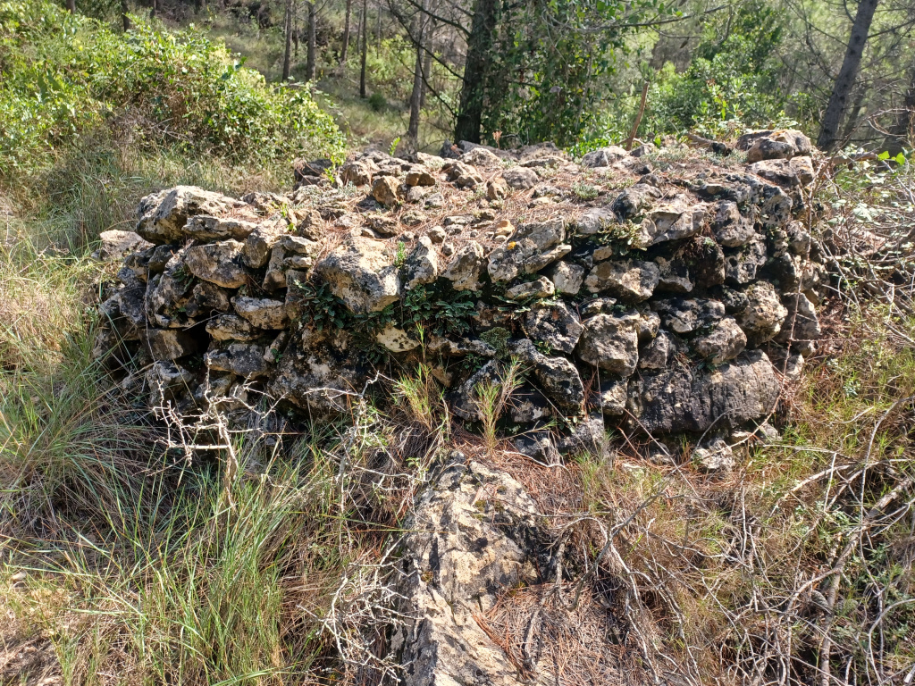 Barraca de planta circular construïda amb la tècnica de la pedra seca.