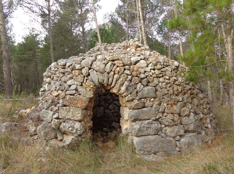Barraca de planta circular construïda amb la tècnica de la pedra seca.