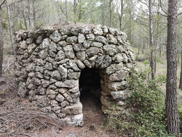 Barraca aïllada de planta circular construïda amb la tècnica de la pedra seca amb pedres irregualrs de mida mitjana.