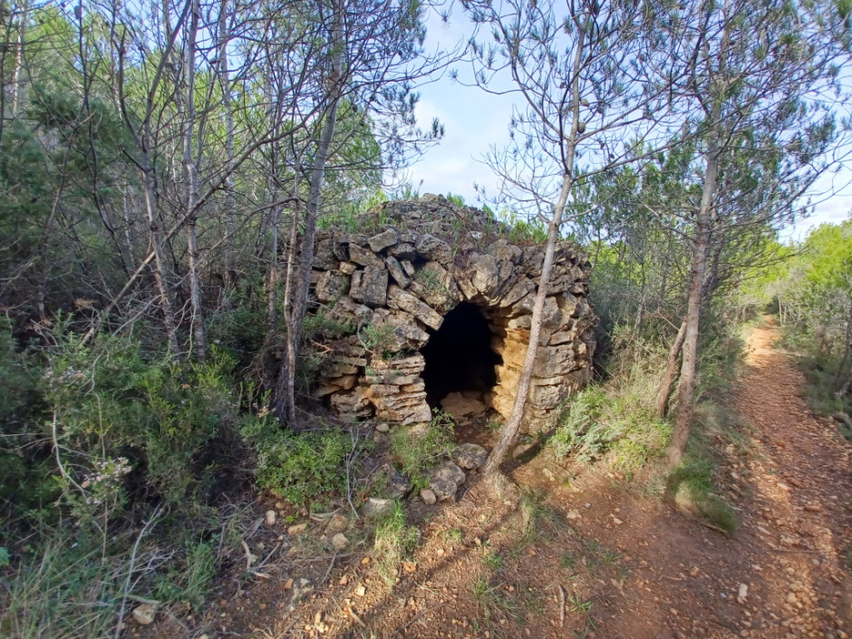 Barraca de planta circular construïda amb la tècnica de la pedra seca.