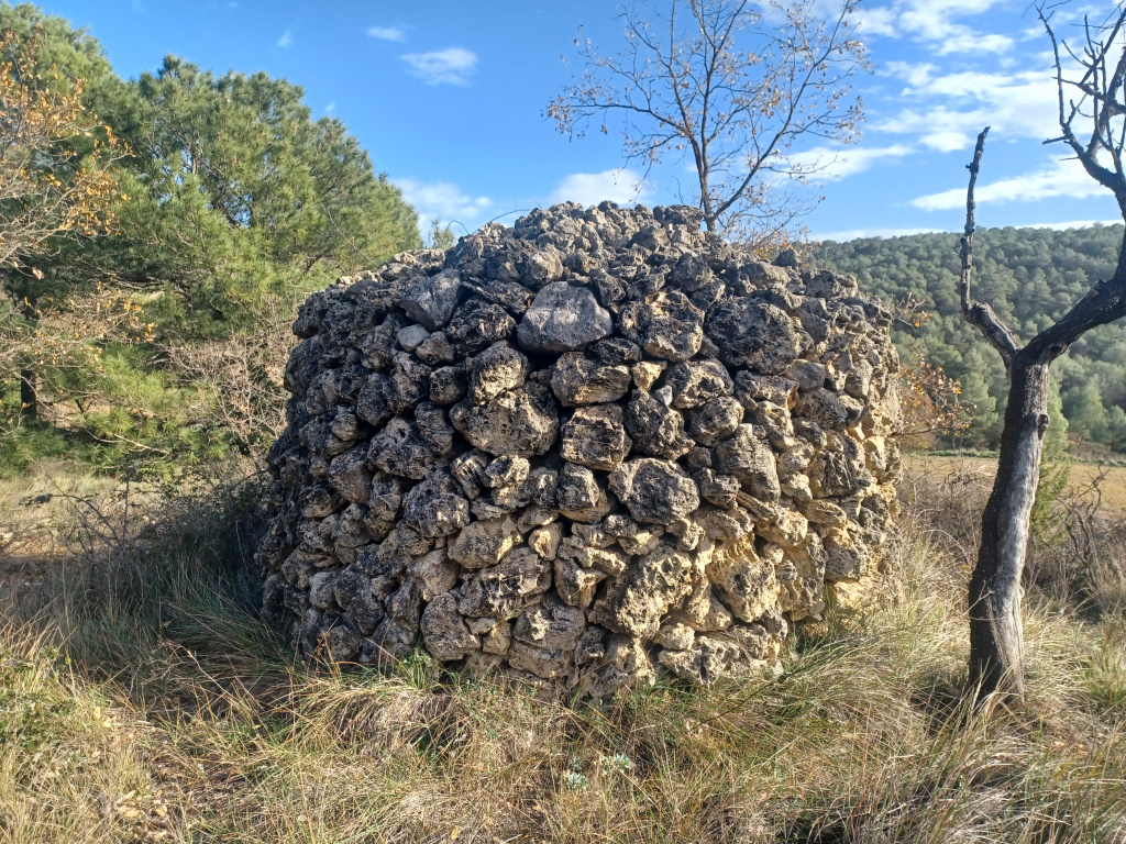 Barraca de planta circular construïda amb la tècnica de la pedra seca.