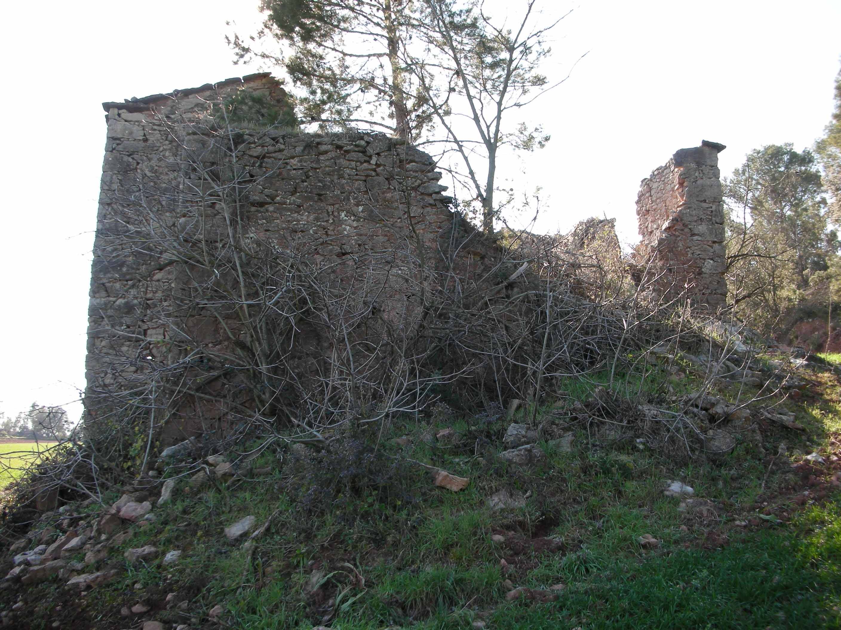 La masia queda al mig d'uns camps. Abans hi havia un camí, però ha estat reconvertit en camp de conreu.
