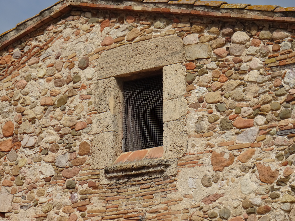 El parament dels murs és arrebossat, si bé hi ha pèrdues en alguns punts. El ràfec és comú, motllurat de tres filades de maó i la teulada és a dos vessants, amb teula àrab.