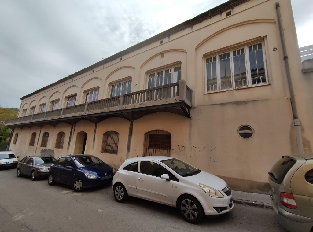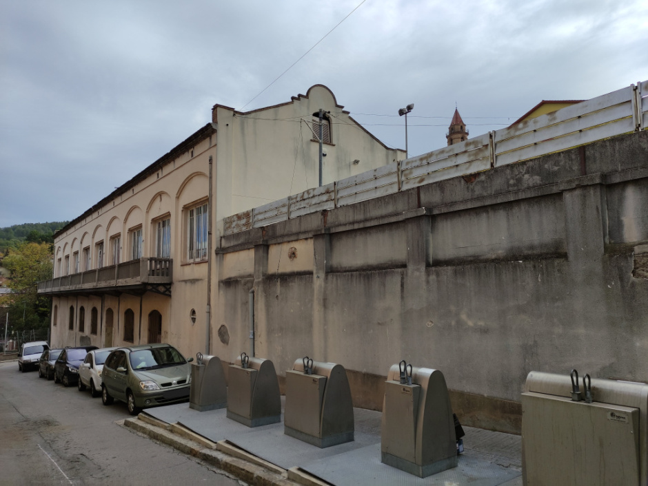 La façana més interessant és la principal, on trobem la porta d'accés, que consta d'un gran portal central amb arc de mig punt i porta de vidre. La façana és llisa i només disposa d'una petita finestra sota el carener. El tester segueix el doble vessant de la coberta, i està embellit amb un acabat amb arc de mig punt a l'alçada del carener de la coberta. Per característiques arquitectòniques l'edifici s'assimila a una nau industrial dels anys 1930.