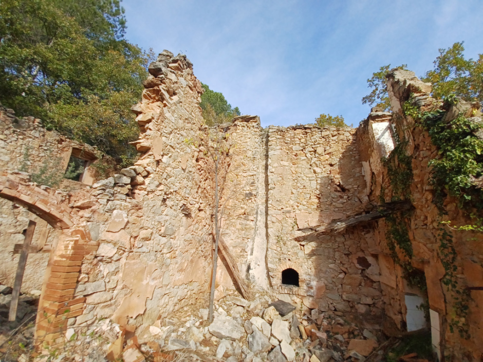 El parament dels murs és de pedra irregular rejuntada amb argamassa amb les obertures emmarcades amb maons. El parament conserva part de l’arrebossat exterior de tonalitat marronosa.