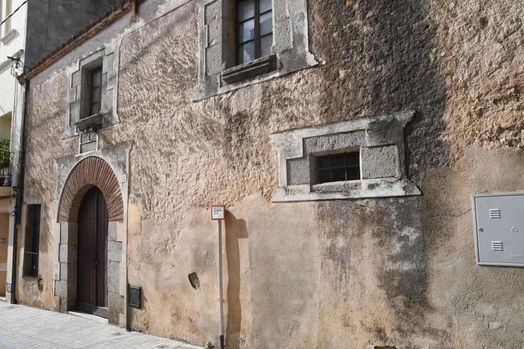 Te un aspecte força compacte i robust, amb un caràcter i aparença de defensa que, transformacions posteriors han desdibuixat, obrint una finestra a la planta baixa, tot i que amb reixa de ferro. A la planta baixa hi trobem una petita obertura, amb reixa de ferro forjat i emmarcament amb pedra granítica treballada, formada per una llinda, un ampit i una pedra a banda i banda com únics brancals. Destaca el portal rodó d'arc de mig punt fet de maons posats a plec de llibre, però amb brancals de pedra granítica treballada. Al seu damunt, hi trobem una finestra de llinda recta i emmarcament de pedra treballada. Al costat, hi ha una altra finestra bessona. El parament és arremolinat amb restes d'esgrafiat del segle XVIII.