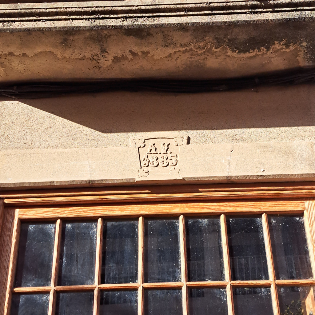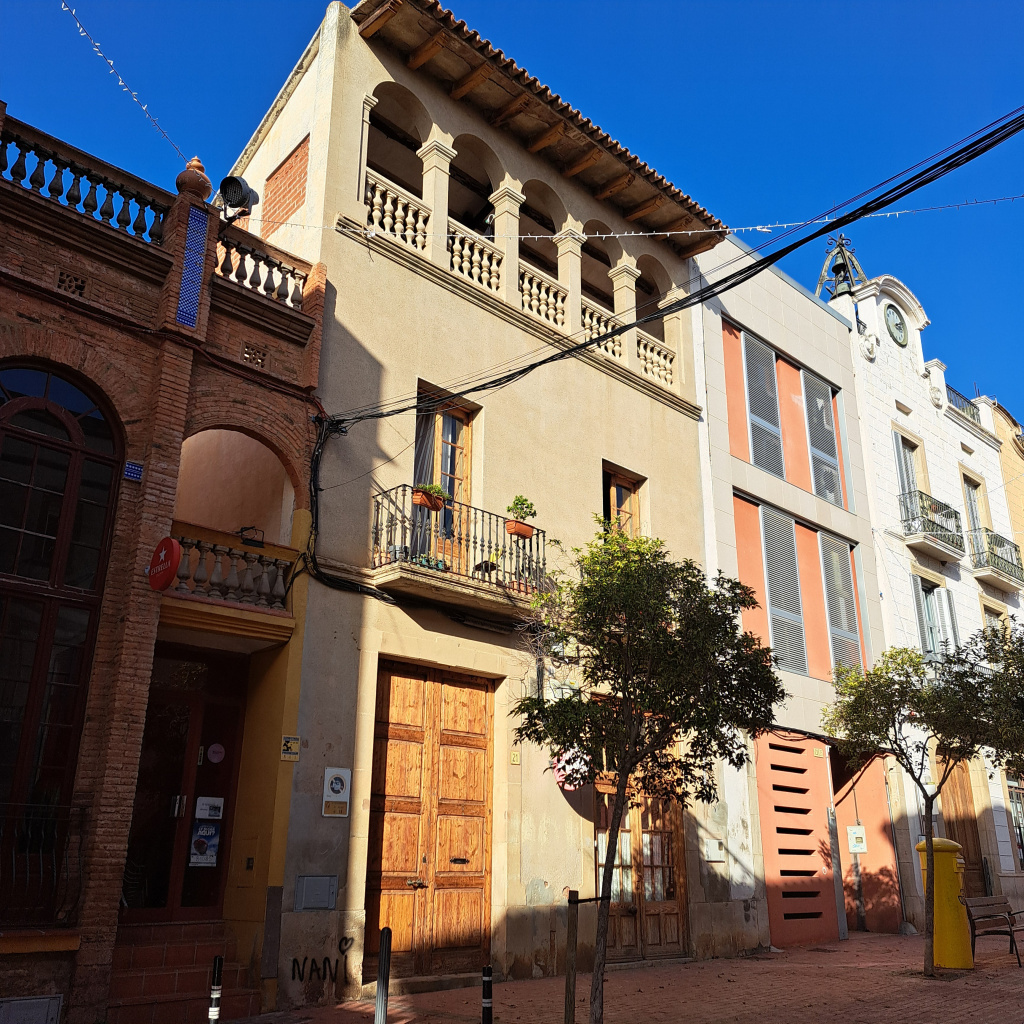 És un edifici entre mitgeres i de planta rectangular. Consta de planta baixa, pis i golfes i té la coberta a dos vessants amb el carener paral·lel a la façana. El frontis es composa segons dos eixos d'obertures d'arc pla arrebossat, a la planta baixa els dos portals es troben emmarcats amb una motllura i sobre el portal principal hi ha una orla amb "A.V 1885" gravats. Els finestrals de sobre el portal tenen sortida a sengles balcons amb baranes de forja. Les golfes s'obren amb una galeria horitzontal amb cinc pòrtics d'arc de mig punt arrebossat sobre impostes i barana de balustrada.