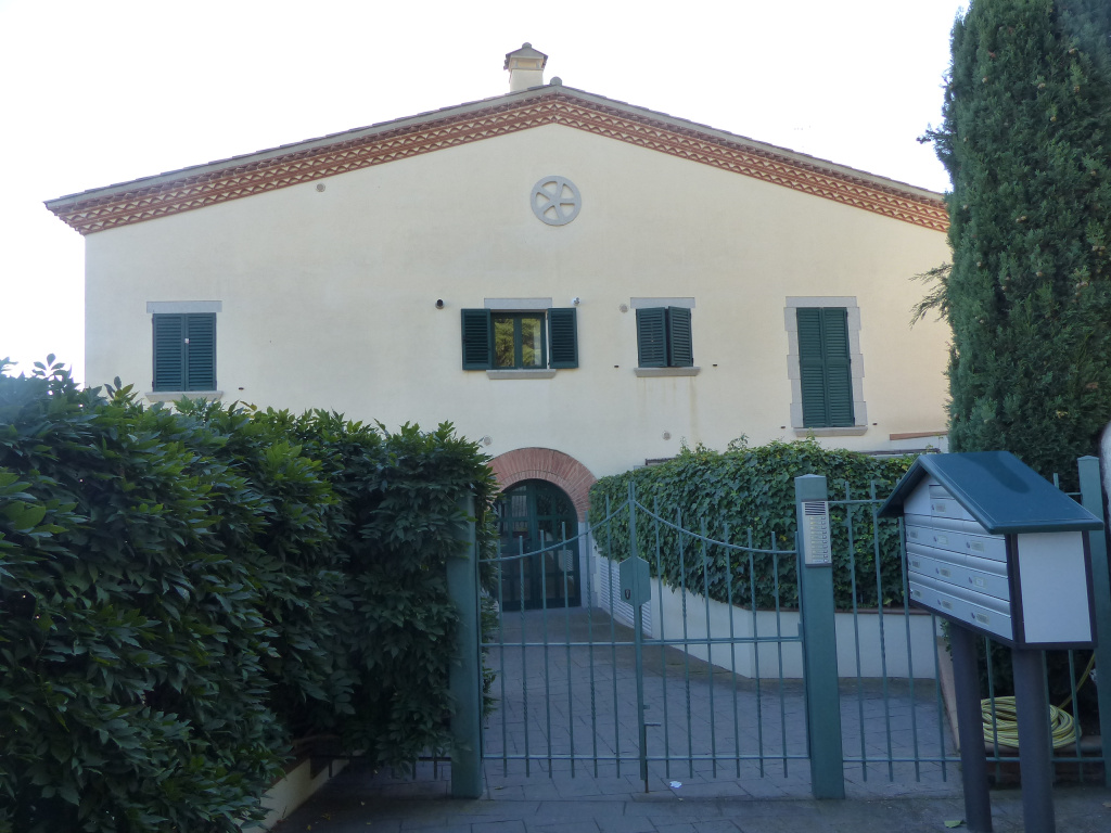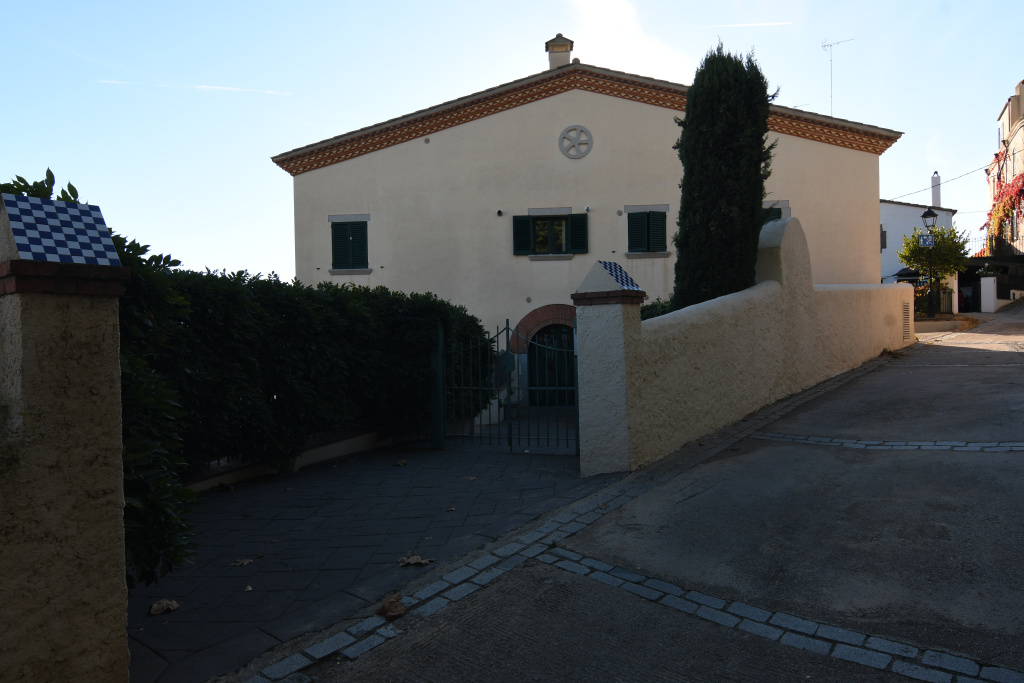 A davant la façana hi ha un barri delimitat amb una doble porta de ferro, i una tanca d'obra.
