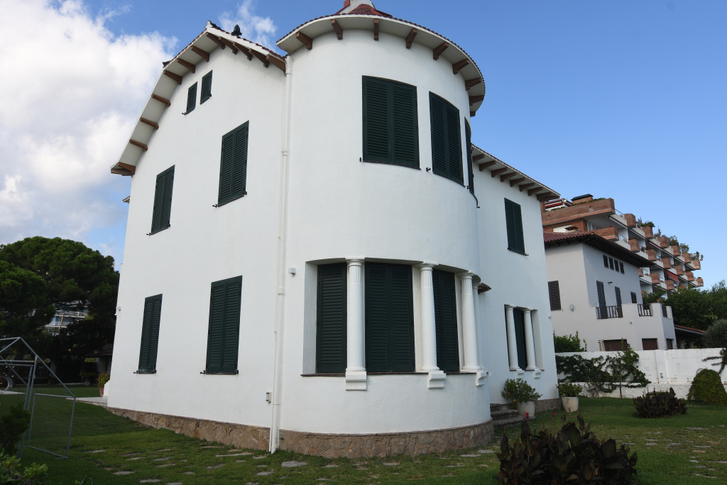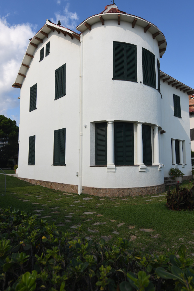 El parament de les façanes és auster, llis i sense ornamentacions. Només té un petit sòcol de placa de pedra. Les finestres són de rectes amb persianes de llibret. Destaquen les obertures de la planta baixa de la façana meridional, sostingudes amb columnetes d'estil clàssic.