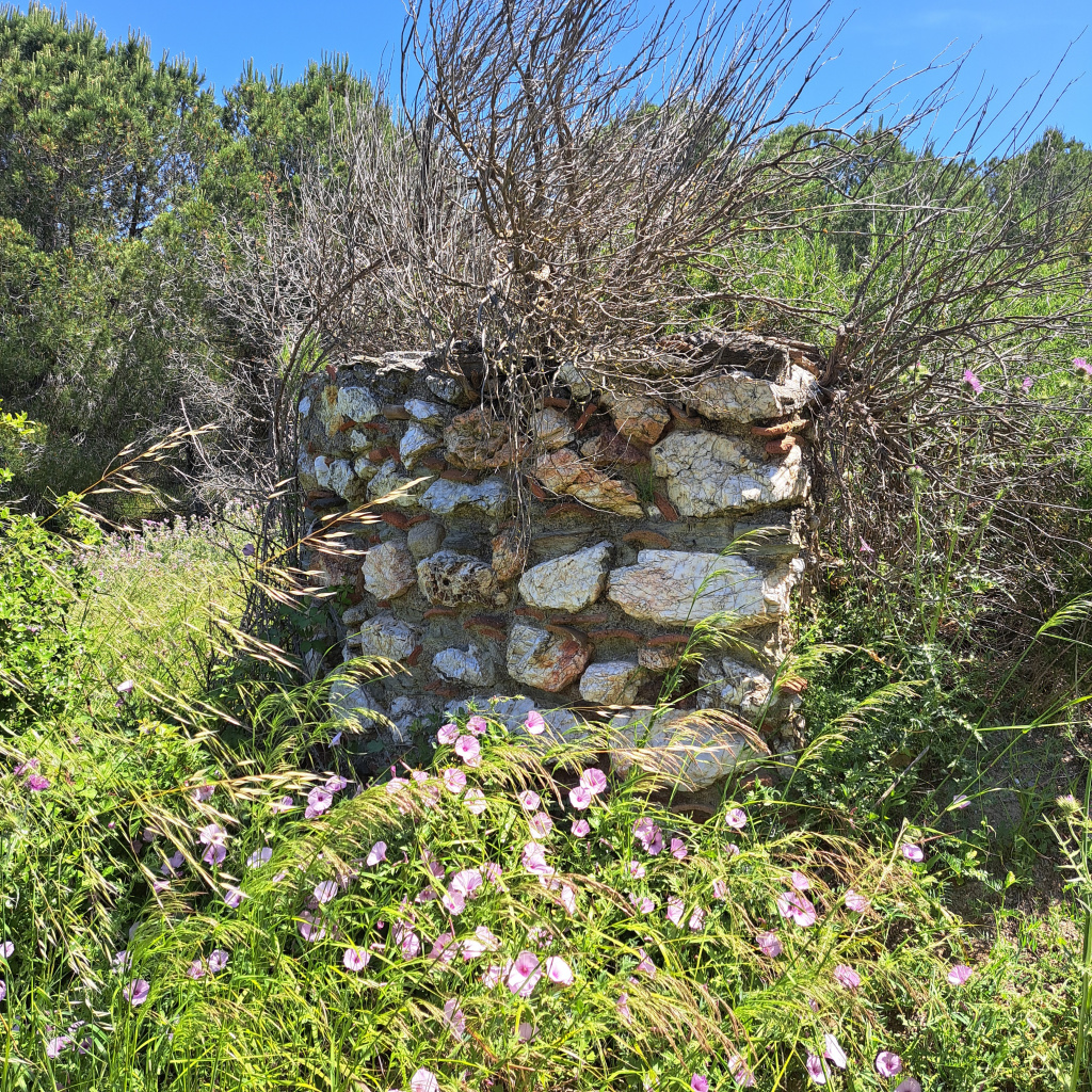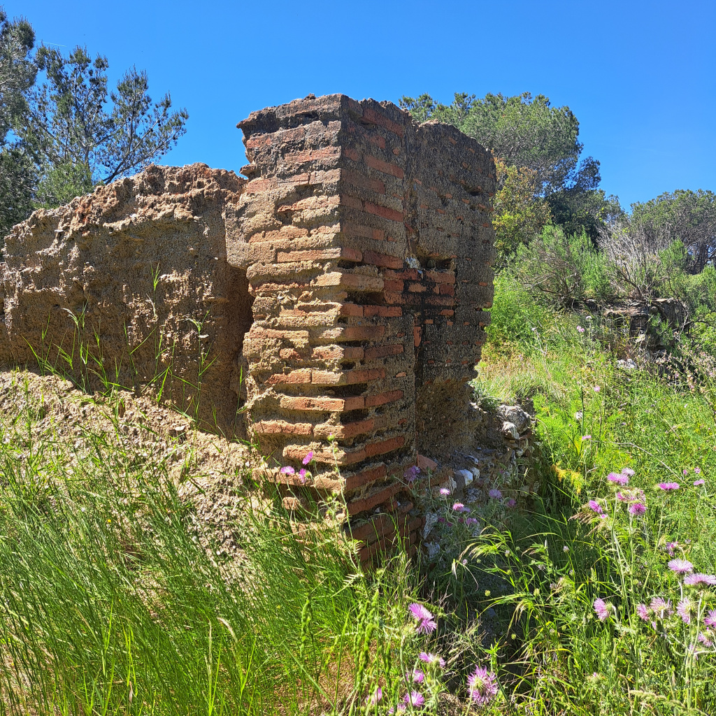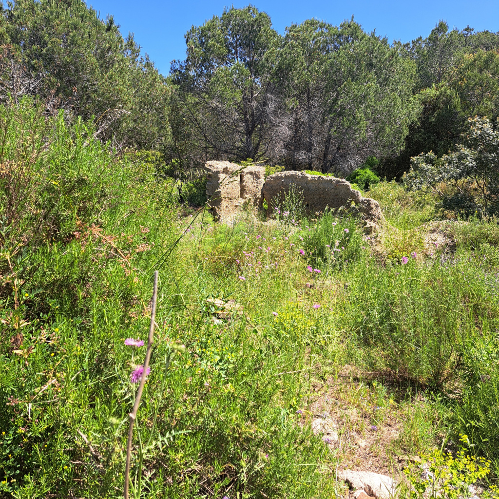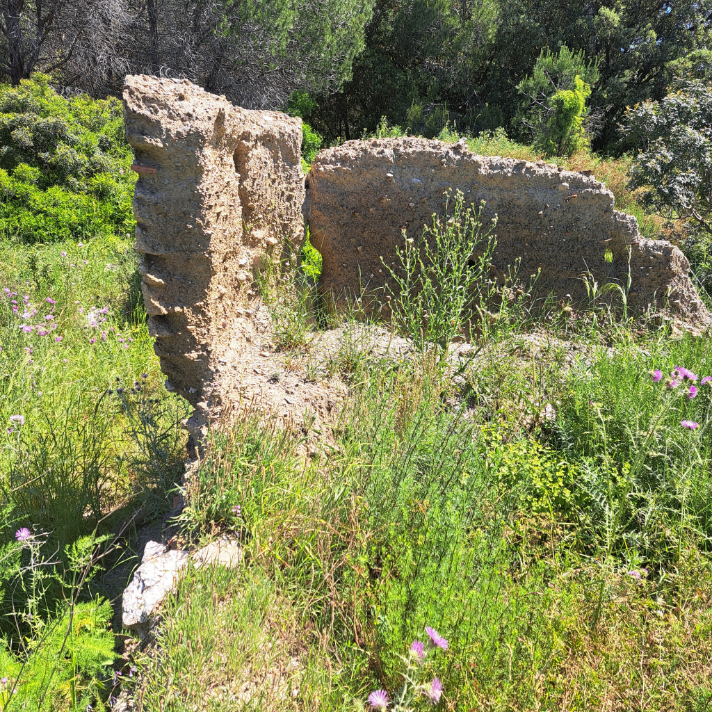 Les restes de la masia de Can Rius de Muntanya estan situades a la vora d'un camp.