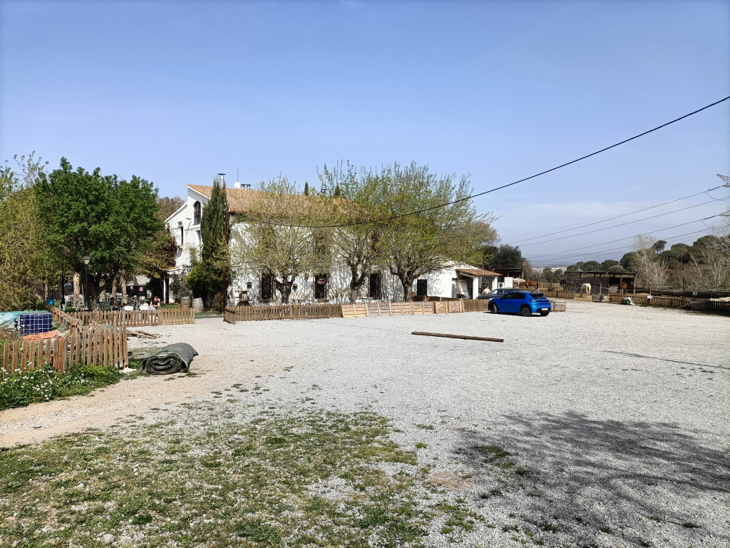 A llevant hi ha una caseta aïllada als quatre vents, de planta rectangular i un únic nivell. La coberta és a dues aigües amb el carener perpendicular a la façana principal. Destaca una gran obertura amb porta de dos batents i arc escarser fet de maons. A banda i banda hi trobem obertures fetes amb motius florals de trepa motllurada.