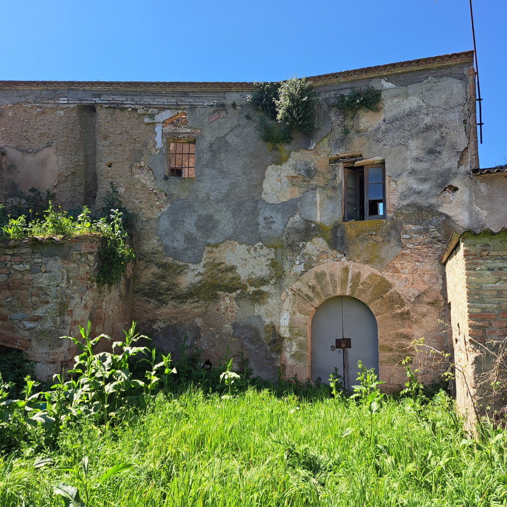 Part de la coberta s'ha esfondrat, així com alguns forjats interiors. A la planta baixa del segon volum hi ha un arc apuntat gòtic.