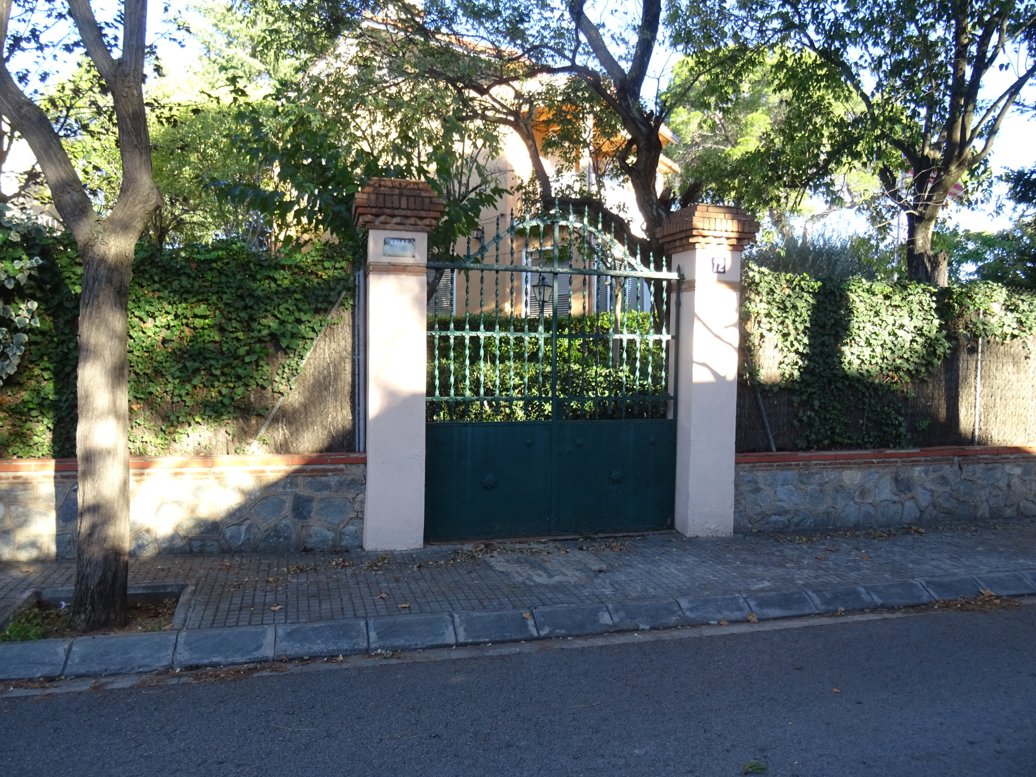 Pel que fa a la tanca que s'estén als costats del cancell, és obrada amb paredat de pedra, amb junta ressaltada i marcada, i coronada amb maó pla.