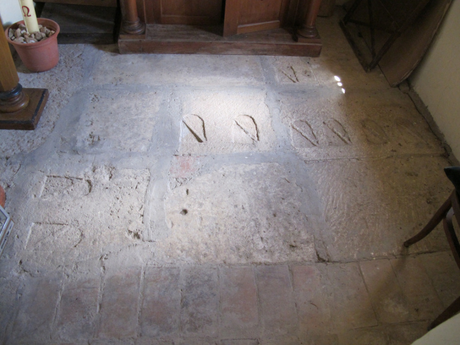 Pel que fa a les lloses sepulcrals interiors exhibeixen l'escut dels Bertran, qui foren senyors de la baronia de Gelida estan ubicades a la sagristia. Es tracta de quatre lloses de les quals una presenta quatre escuts, dues presenten dos escuts, i, la més petita de dimensions, només un escut esculpit.