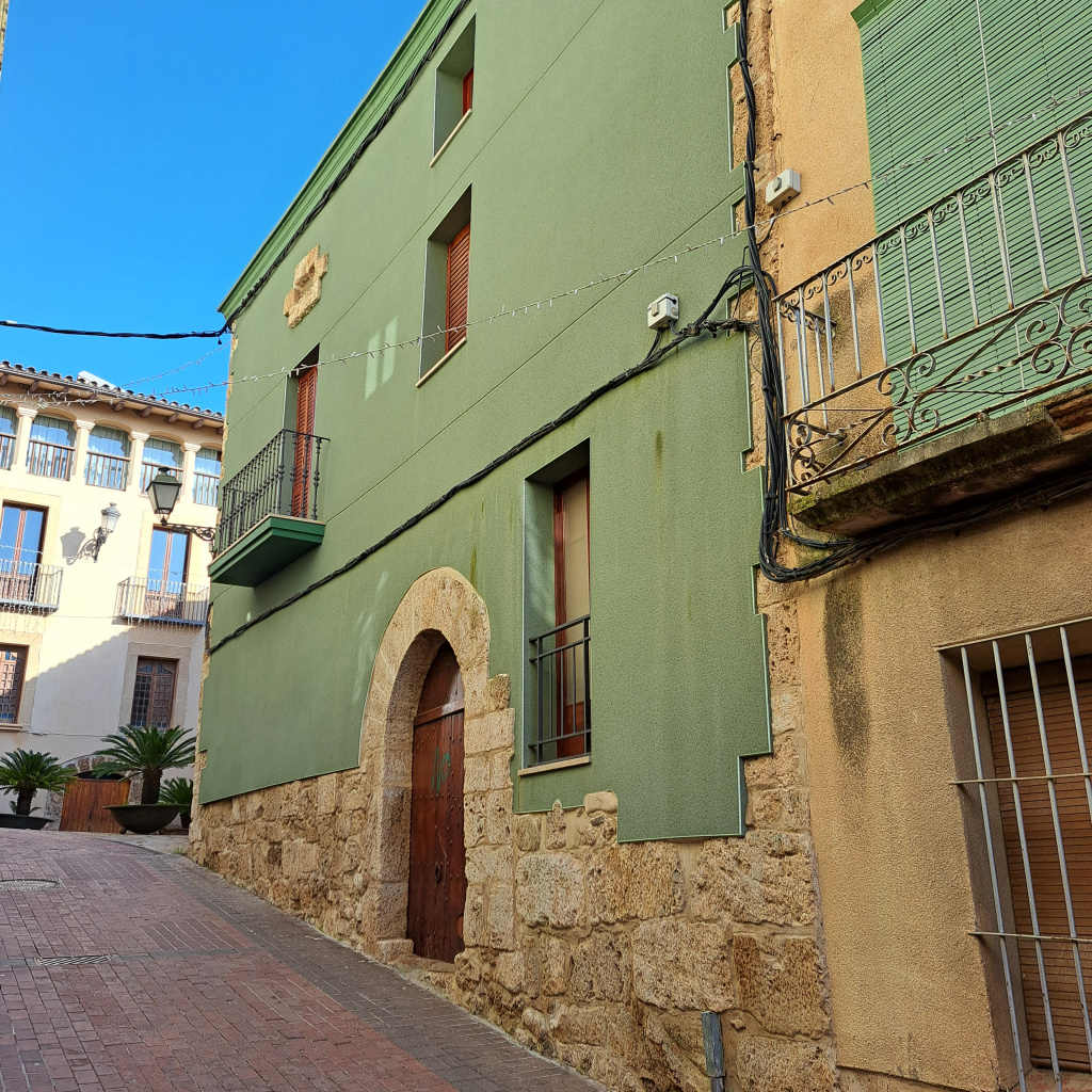 Casa d'origen medieval construïda dins la vila closa del Mercadal, tot delimitant un costat de la plaça.