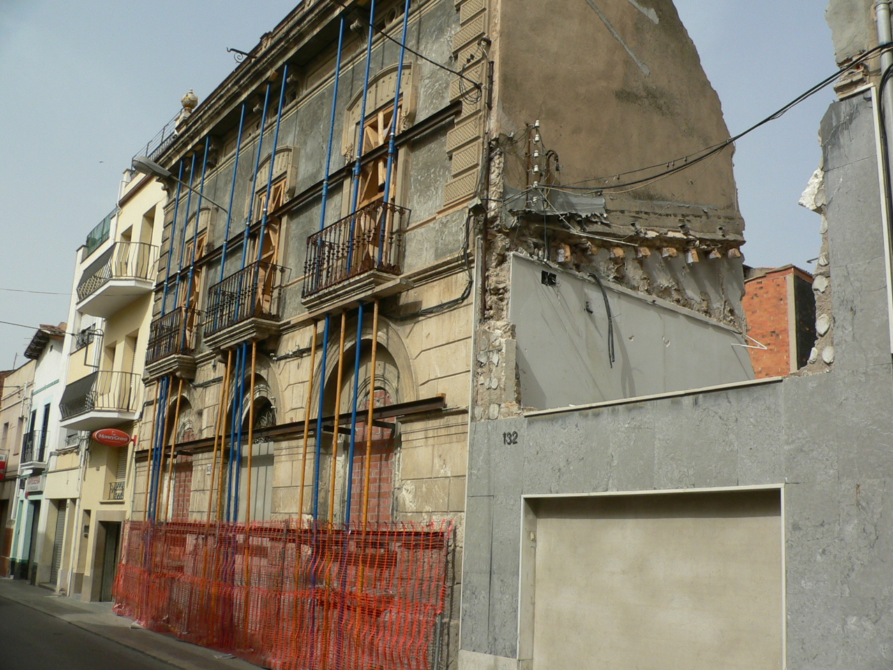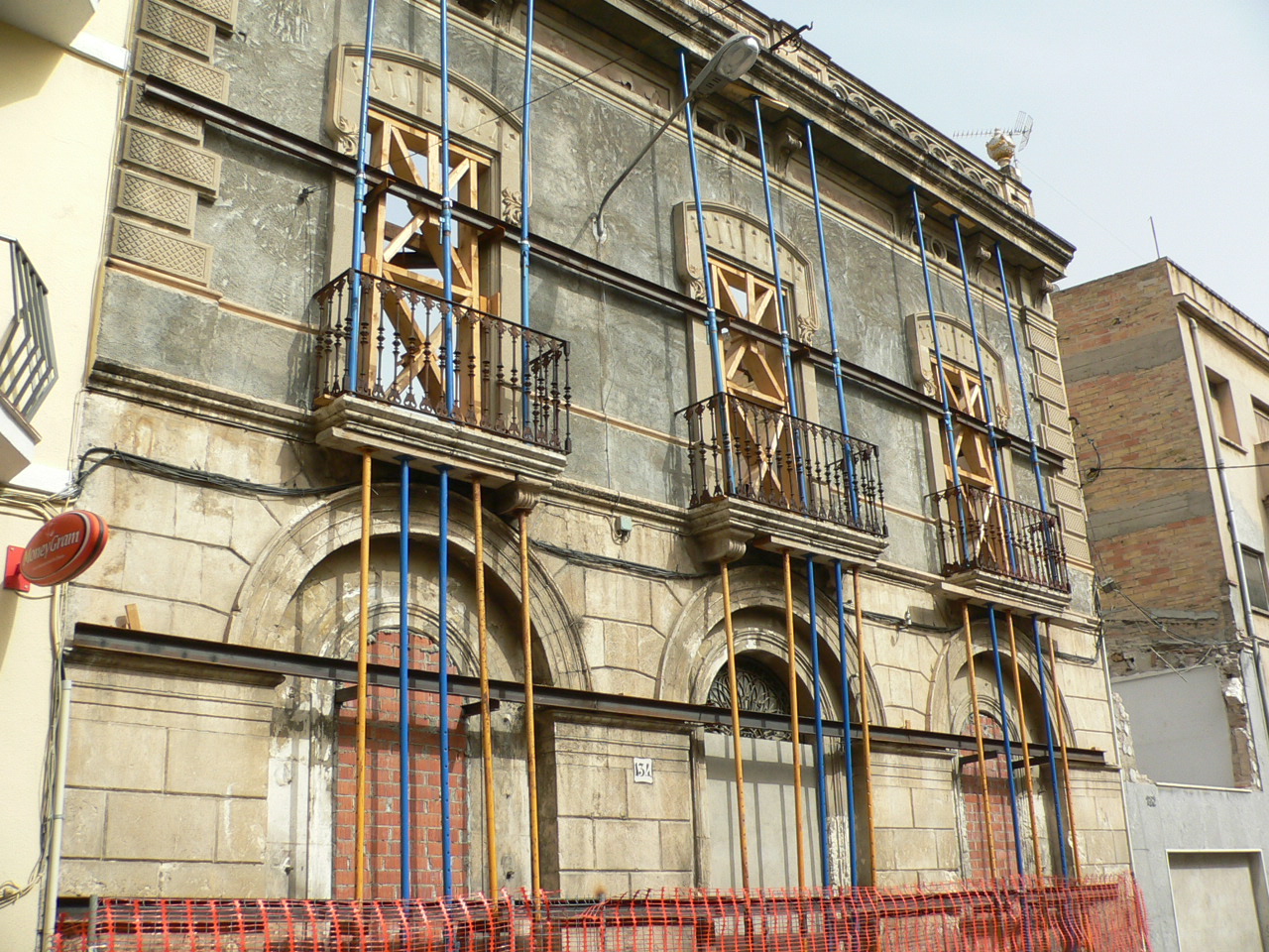 Edifici entre mitgeres que tenia planta rectangular, que consta de planta baixa, pis i sotacoberta. Només conserva la façana que està apuntalada. La seva composició és simètrica a partir de tres eixos verticals. El parament inferior de la façana, que correspon a la planta baixa està fet de bandes horitzonatsl; i a la part superior és llis.