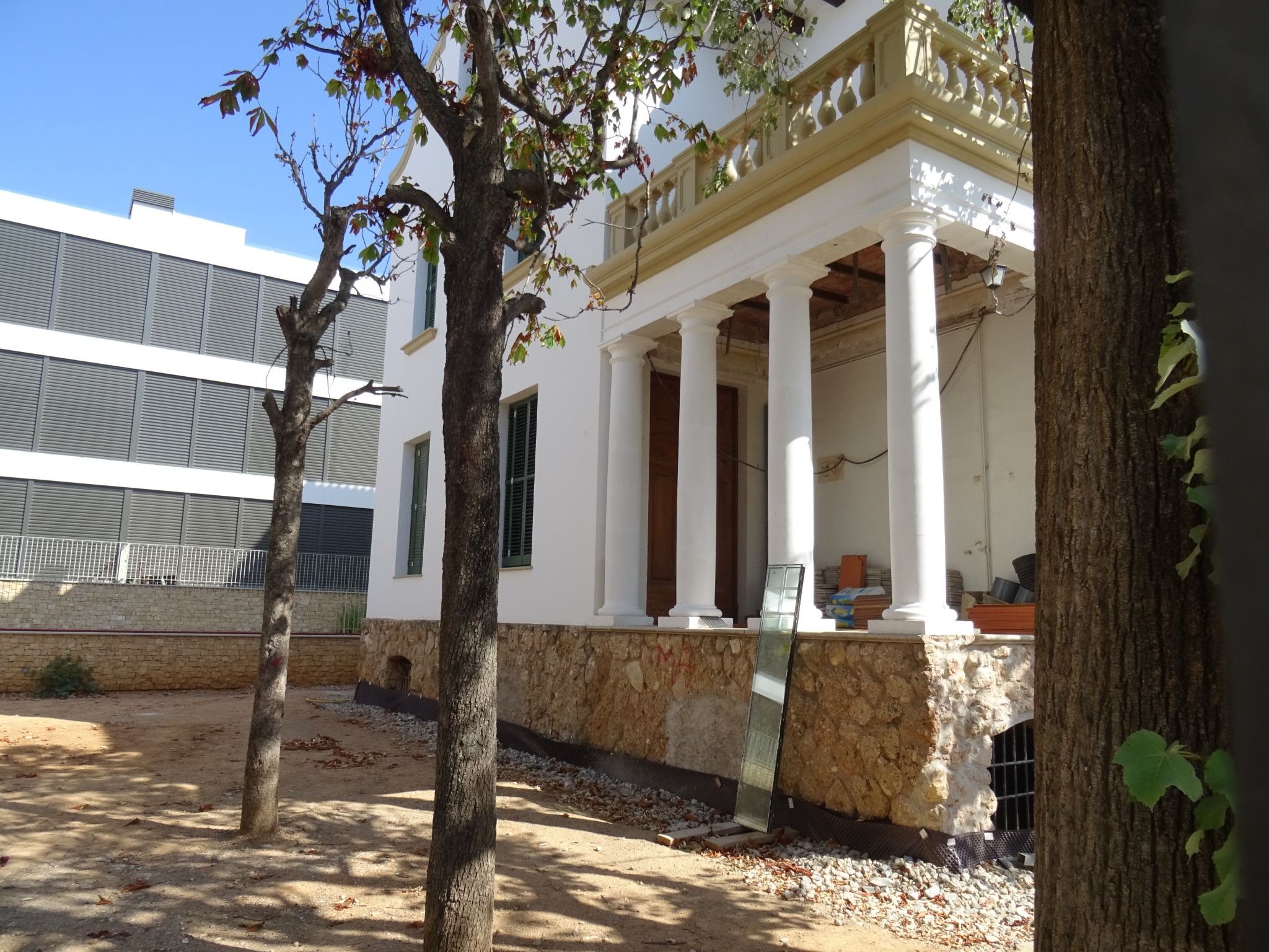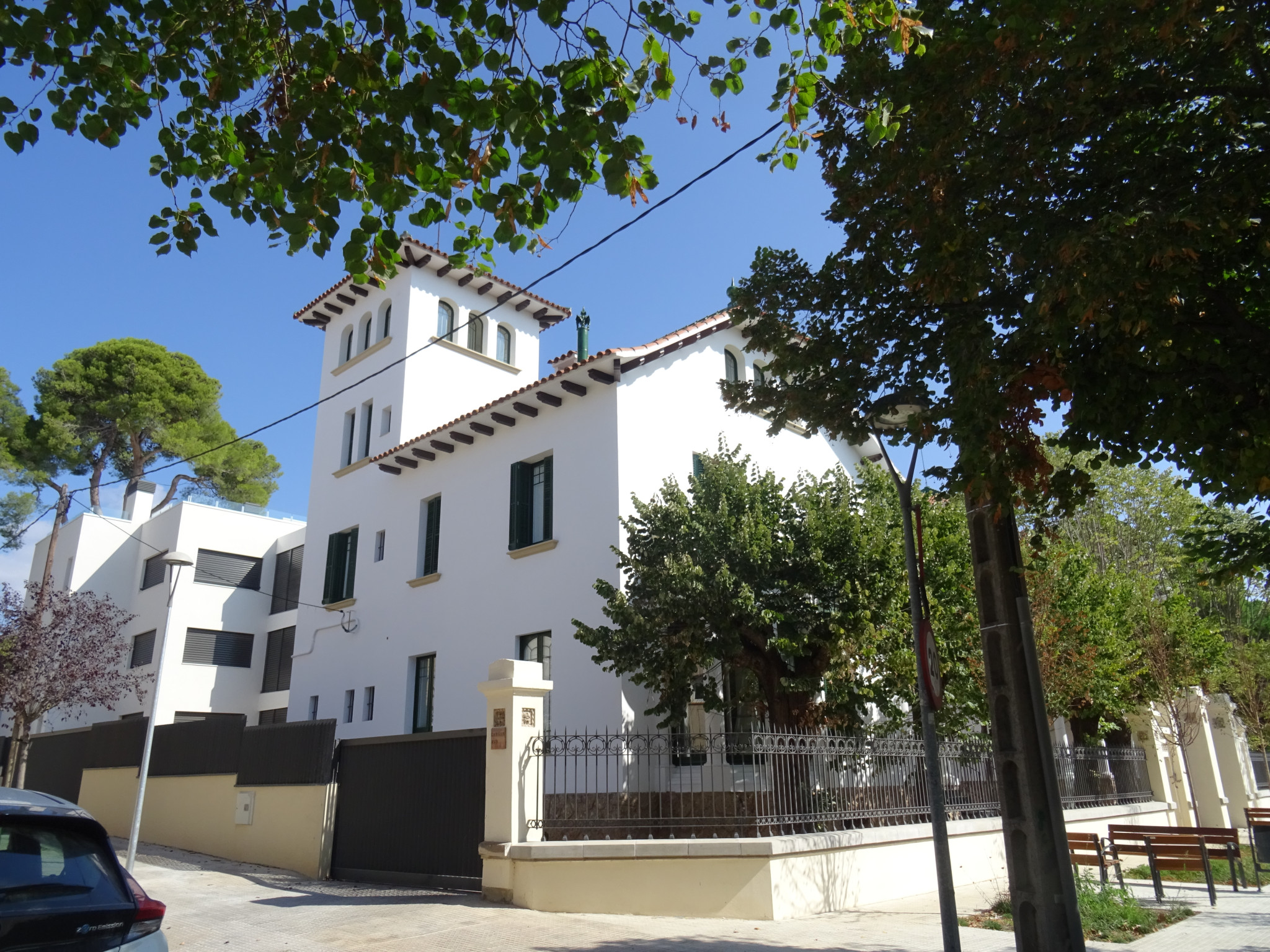La tanca de la finca és d'obra, amb reixa de ferro forjat.