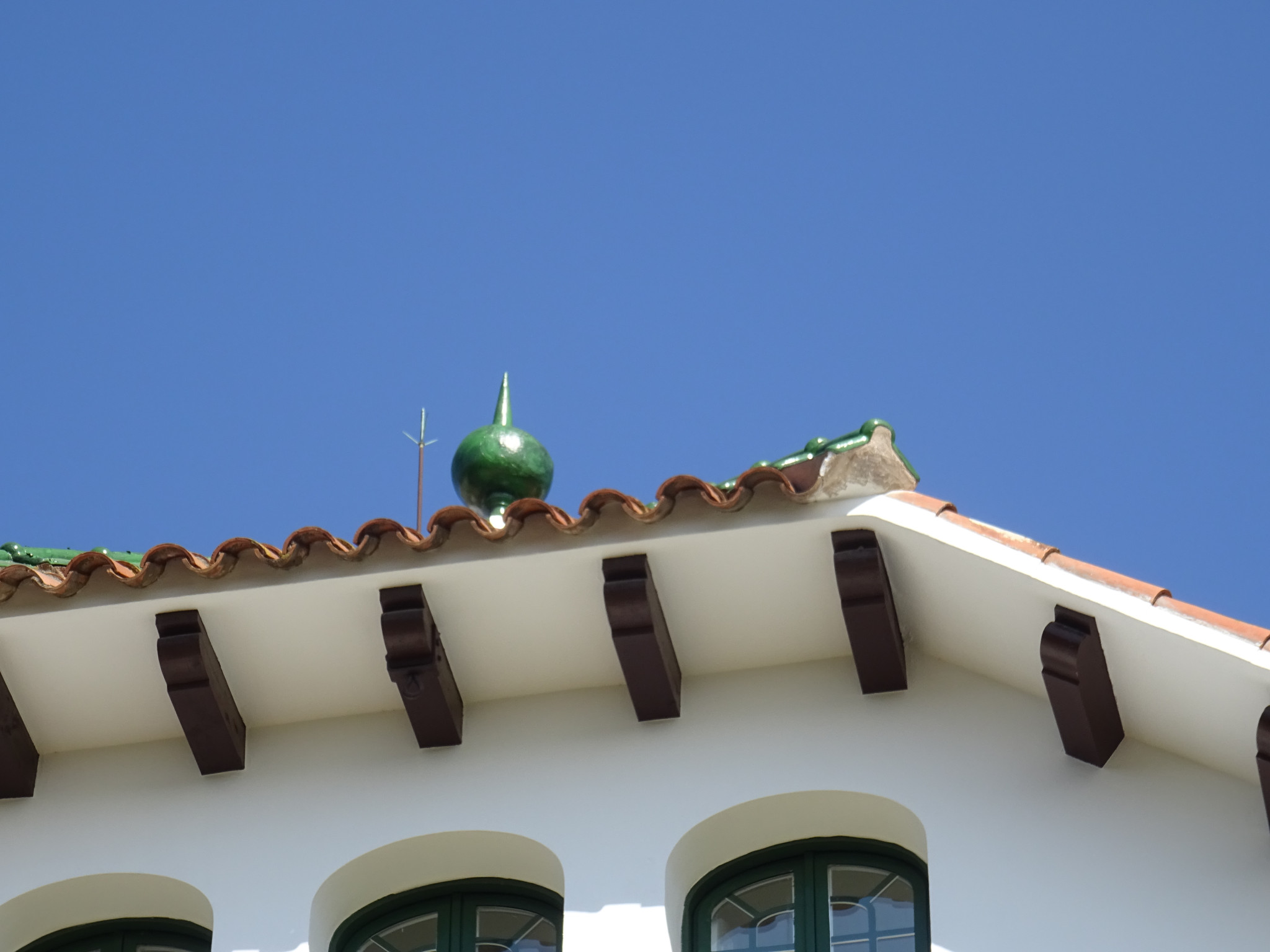 A l'interior hi ha un pòrtic de columnes de fosa que forma part de l'atri de la tribuna, amb una gran varietat de rajoles de paviment hidràulic, així com un arrambador al menjador fet de rajola decorativa en tons groc i blau. Representen escenes del Quixot. També hi ha un pòrtic jònic a l'atri, l'escala i la fusteria del distribuïdor amb vidres bisellats.