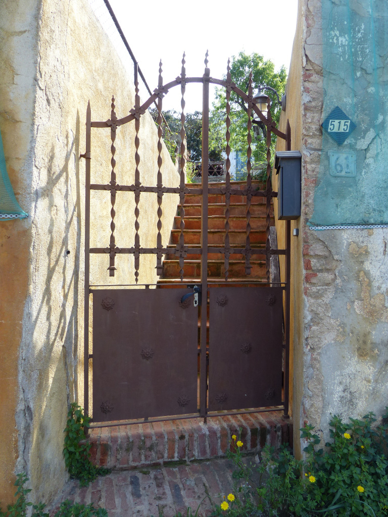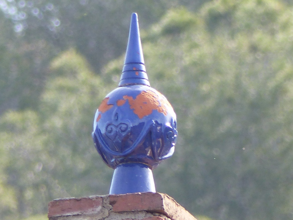 Tres respiralls de la cambra d'aire estan fets de ceràmica blava; així com els pinacles en forma de pinya que hi ha damunt el capcer.