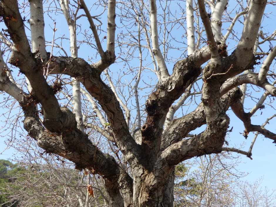 És un arbre que en condicions òptimes pot mesurar entre els vint i els trenta cinc metres d’alçada. El tronc pot mesurar més de 2 m de diàmetre i acostuma a ésser buit a l’interior. Els exemplars més joves presenten una escorça llisa i de color marró clar, mentre que els exemplars que ja tenen més de 20 anys, tenen una escorça enfosquida amb esquerdes longitudinals.