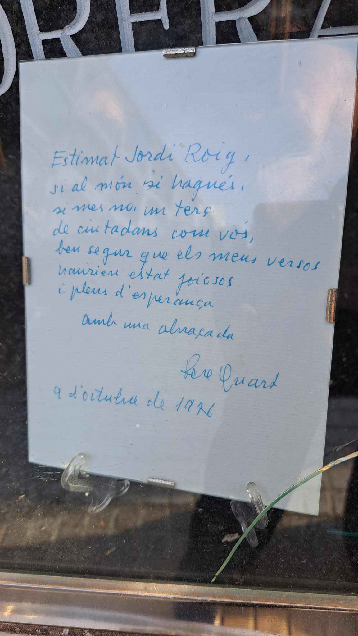 Destaquen un mausoleu modernista; la tomba de Josep Tarradellas amb la placa on se'l nomenava "Commandeur de la Legion d'Honneur" atorgada pel president François Miterrand; un poema original de Pere Quart, dins del nínxol de la família Roig Morera; la capella-panteó de la família Mensa; el nínxol d'Antoni Novellas Codina, entre altres sepultures, així com les dues creus: una exempta i una segona ubicada en una cantonada de la zona de nínxols.