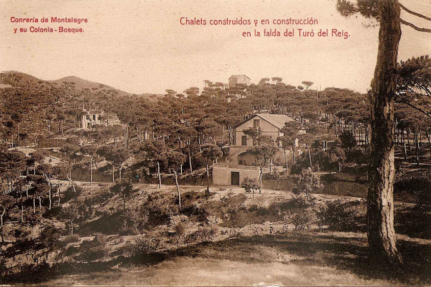 La popularitat de la Colònia es va estendre ben aviat entre les classes benestants. El primer a instal·lar-s'hi va ser l'artista badaloní, Llorenç Brunet. Brunet va construir una torre museu que va anomenar el Cau Brunet –que dóna nom al restaurant actual– feta a semblança del Cau Ferrat que, el també artista, Santiago Russinyol tenia a Sitges. Un museu que va servir de crida per a la promoció de la urbanització. I és que els primers anys de construcció de la colònia el diari La Vanguardia ja se'n feia ressò amb anuncis com l'aparegut el 5 de juliol de 1918 que deia així: La Conrería de Montalegre y su Colonia-Bosque. Excursión pintoresca-veraneo ideal, cerca de Barcelona, con frescas temperaturas y aires sanos. Chalets a plazos desde 1.000 pesetas anuales.