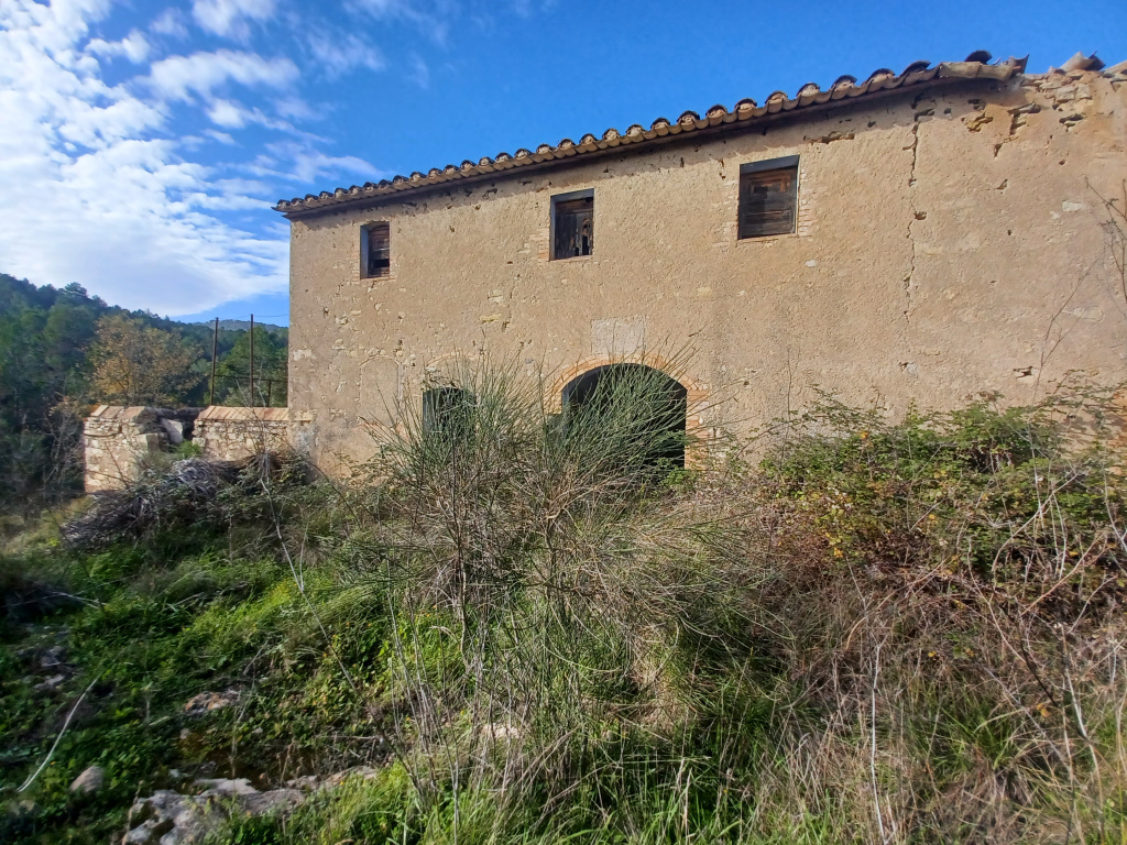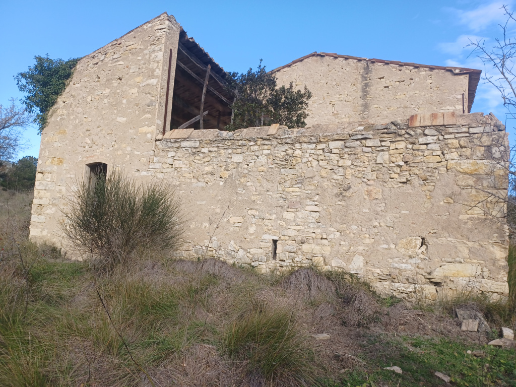 A banda i banda s’hi adossen dos volums més destinats a zones de coberts i corrals. El parament dels murs és de pedra i conserva l’arrebossat amb argamassa.